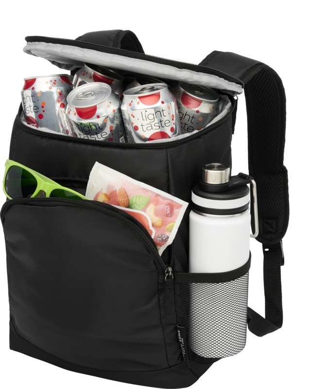 Réalisé avec une isolation thermique haute densité, ce sac à dos dispose d’un compartiment principal zippé, d’une poche frontale zippée, d’une poche latérale maille filet et de bretelles matelassées ajustables. Anti fuite Ultra Safe®, doublure PEVA facile à nettoyer. Peut contenir 18 canettes. Sans PVC. 420D Polyester.