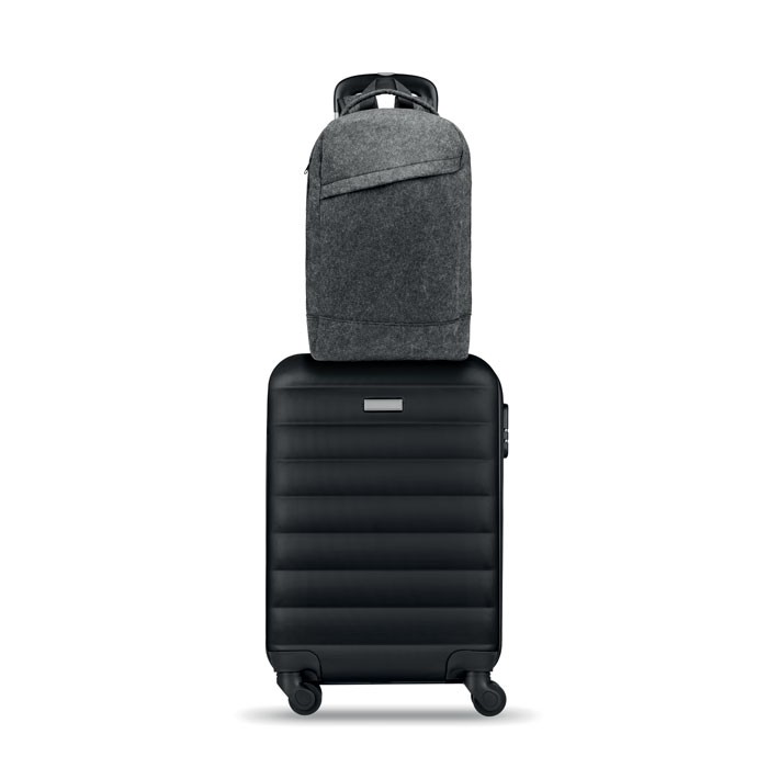 Sac à dos pour ordinateur portable 13 pouces en feutre RPET avec bandoulière et sangle rembourrées, avec un compartiment interne principal. Compartiment intérieur zippé et passant pour trolley au dos.