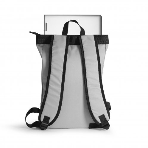 Sac à dos 100% PET recyclé 300D; doublure en PET recyclé 190T, matière première issue de filière certifiée GRS. Moussé au dos et sous le sac + fermeture zippée, 1 poignée, bretelles moussées ajustables