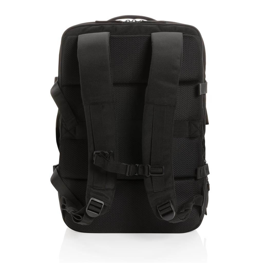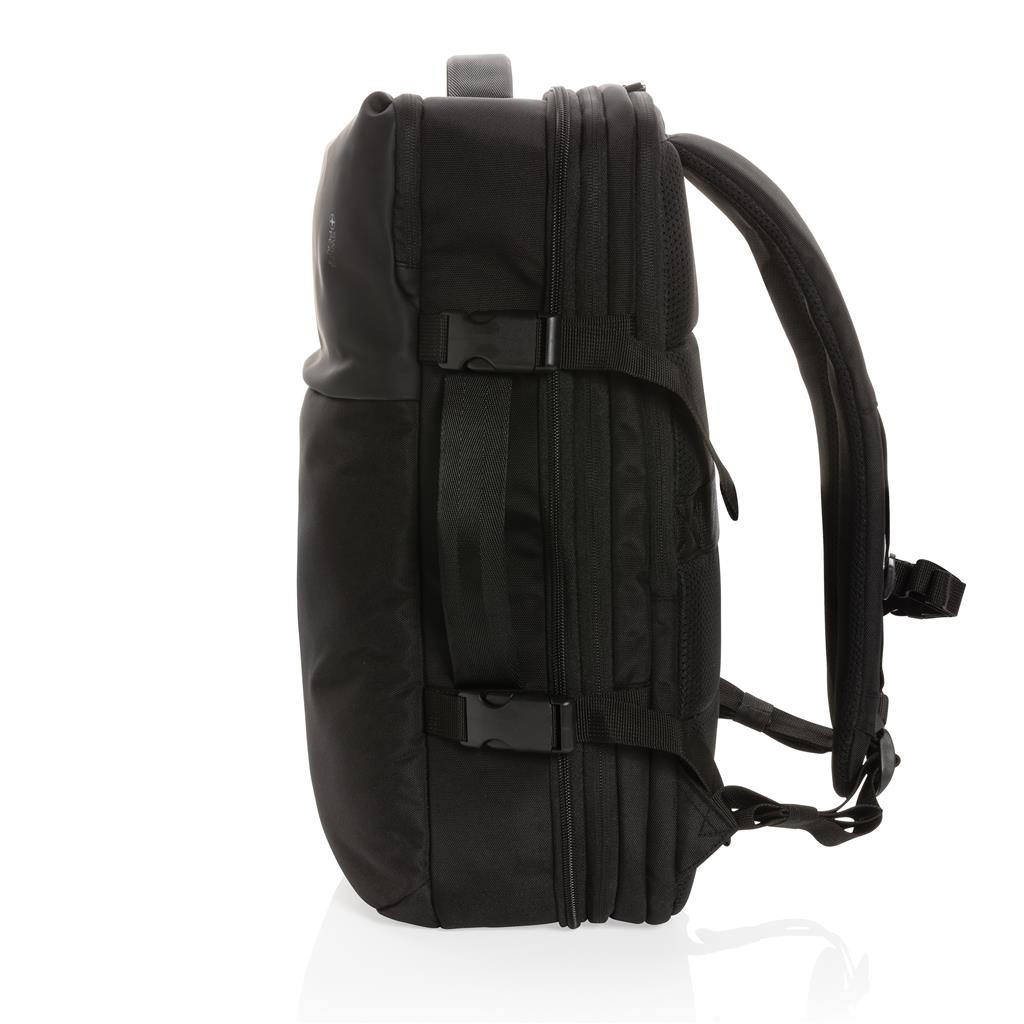 Le sac à dos week-end extensible Swiss Peak en rPET AWARE™ permet de transporter votre ordinateur portable de 15,6 pouces dans un compartiment conçu pour un contrôle rapide et facile à l’aéroport. Son compartiment principal extensible augmente la capacité de plus de 35% pour les voyages plus longs. Les sangles de compression latérales sécurisent et stabilisent le contenu pour faciliter le transport. Rangements pour les chargeurs, les câbles et autres éléments essentiels. Avec une sangle de transport. Avec traceur AWARE™ qui valide l’utilisation authentique de matériaux recyclés. Chaque sac permet d’économiser 22,9 litres d’eau et a réutilisé 38,4 bouteilles PET de 0,5L. 2 % des recettes de chaque produit Impact vendu seront reversés à Water.org. Sans PVC.