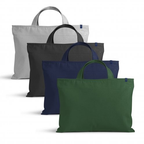 Besace business 100% coton biologique 220gr/m², matière première issue de filière certifiée GOTS et poignées de 2,5 x 25 cm.