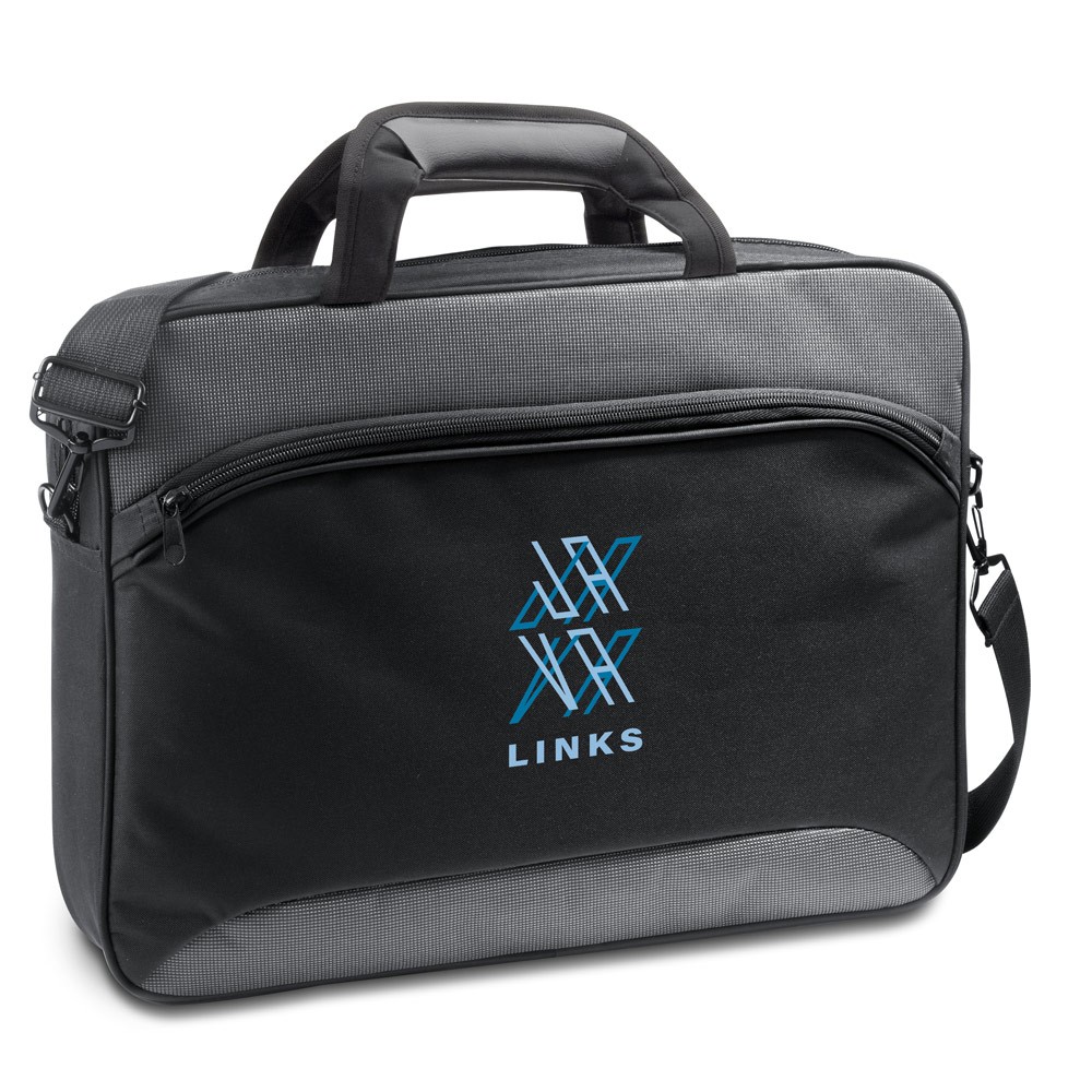 Sacoche pour ordinateur en 600D 2Tone et 300D avec compartiment doublé et séparateur rembourré pour ordinateur jusqu’à 15.6″. La sacoche a une poche frontale avec plusieurs compartiments intérieurs. À l’arrière, il y a un passant pour trolley. Bandoulière avec renfort rembourré.