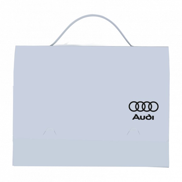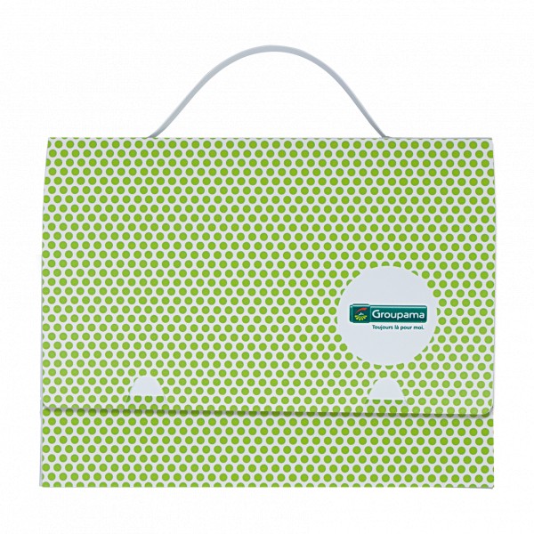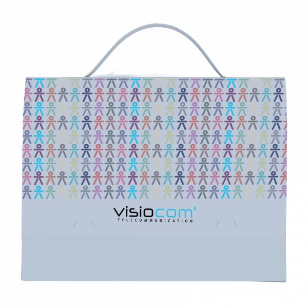 Valisette (livrée à plat, poignée montée) en polypropylène 0.8mm. Un marquage 1 couleur sur rabat et frais techniques inclus