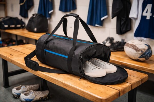 Sac de sport cylindrique de 32L, idéal pour transporter vos affaires d’entraînement et de loisirs. Les fermetures éclair sont étanches pour une protection accrue. La finition de ce sac à dos lui confère un toucher doux, rendant son utilisation plus confortable. Matériau extérieur : polyester recyclé 600D haute densité avec revêtement imperméable et matériau intérieur : polyester recyclé 210D. 1 compartiment principal + 1 poche avant et 1 poche latérale pour chaussures, toutes deux avec fermeture avec sangle pour trolley, bandoulière réglable et amovible avec renfort rembourré. Fabriqué en Chine.