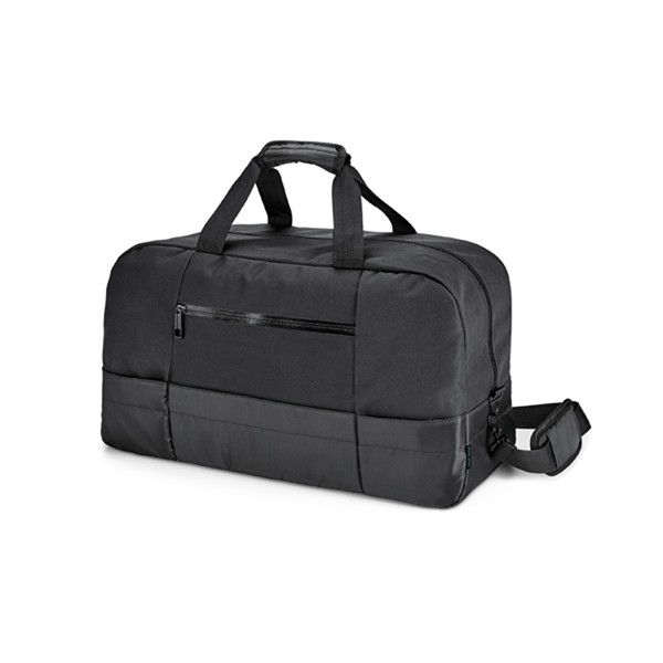 Sac de sport exécutif en 840D jacquard et 300D avec intérieur doublé. Compartiment principal et poche frontale avec fermeture éclair. Le sac est doté d’une bandoulière à sangle amovible et réglable avec renfort rembourré. Capacité jusqu’à 30 L et fabriqué en Chine.