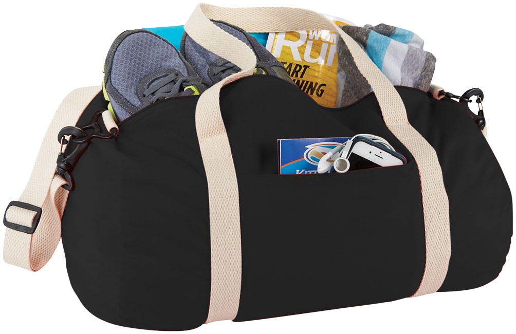Grand compartiment principal zippé. Poche avant non zippée. Poignées de transport de 29,5 cm. Bandoulière ajustable et détachable. Coton, 140 g/m². Fabriqué en Inde.