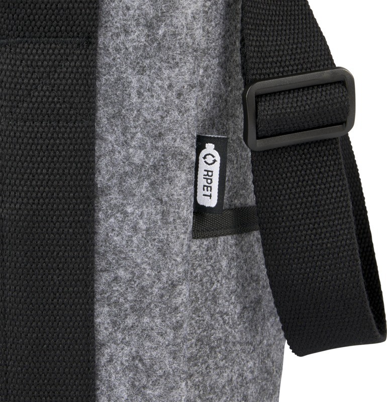 Grand sac isotherme en feutrine recyclée de haute qualité, doux et durable, certifié GRS. Comprend un grand compartiment principal (six bouteilles de 1,5 litre) doublé d’une isolation PEVA thermique haute densité très épaisse et sans danger pour les aliments, afin de garder les boissons et les rafraîchissements au frais pendant des heures. Fermeture zippée sur le dessus, poche frontale et deux poches latérales pour un rangement supplémentaire. Bretelles longues réglables en coton tissé (55 x 3,8 cm) et 2 poignées en coton tissé (25 x 3,8 cm) avec fermeture par boucle et crochet sur le dessus. Facile à nettoyer. Capacité : 21 litres. Polyester recyclé certifié GRS. Fabriqué en Chine.