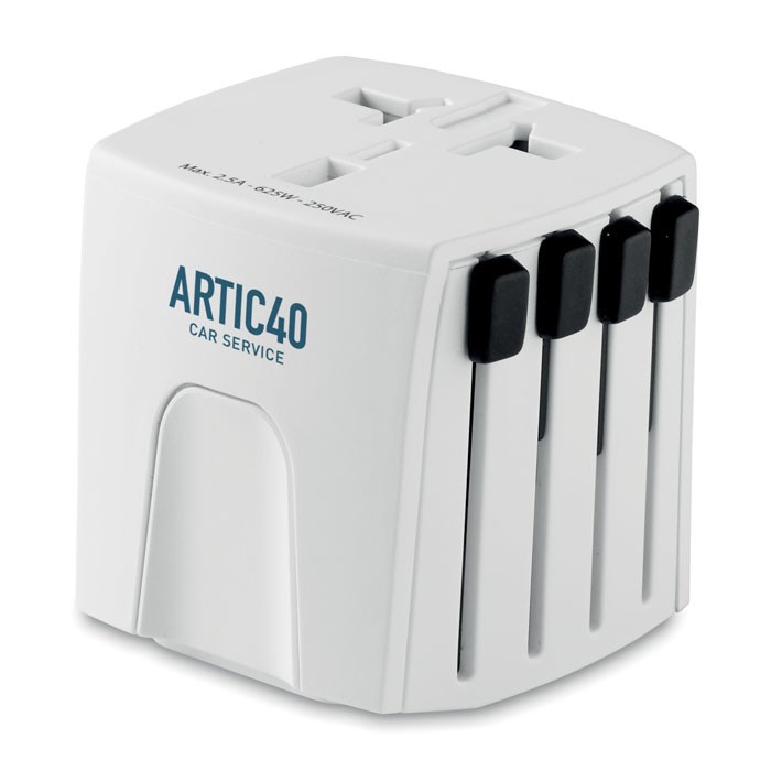 Adaptateur de Voyage universel (uniquement pour appareils récents) Fiches pour Europe, USA/japon, Australie/Chine. Conforme à toutes normes internationales de sécurité. Sécurité enfant. Fabriqué en Thaïlande.