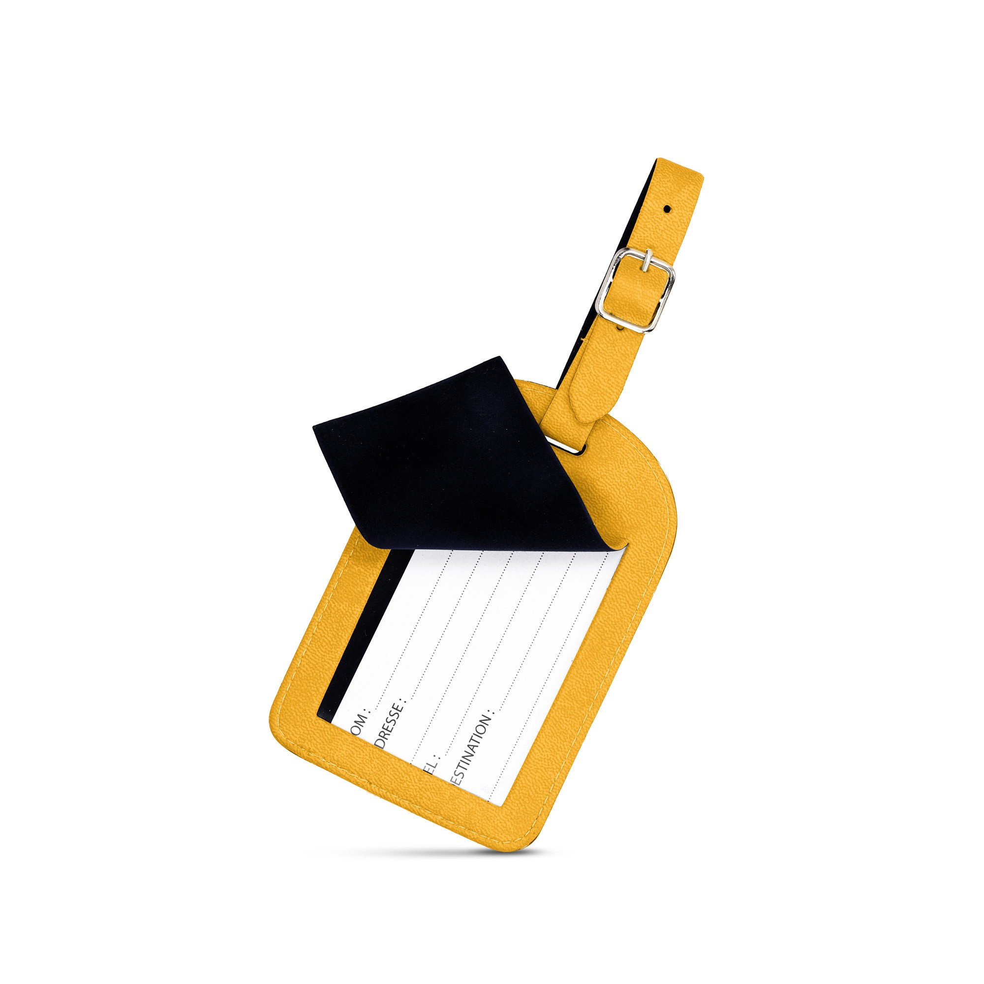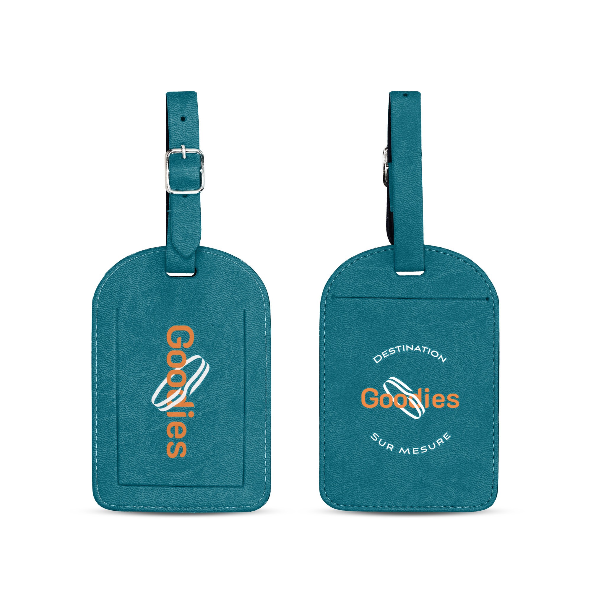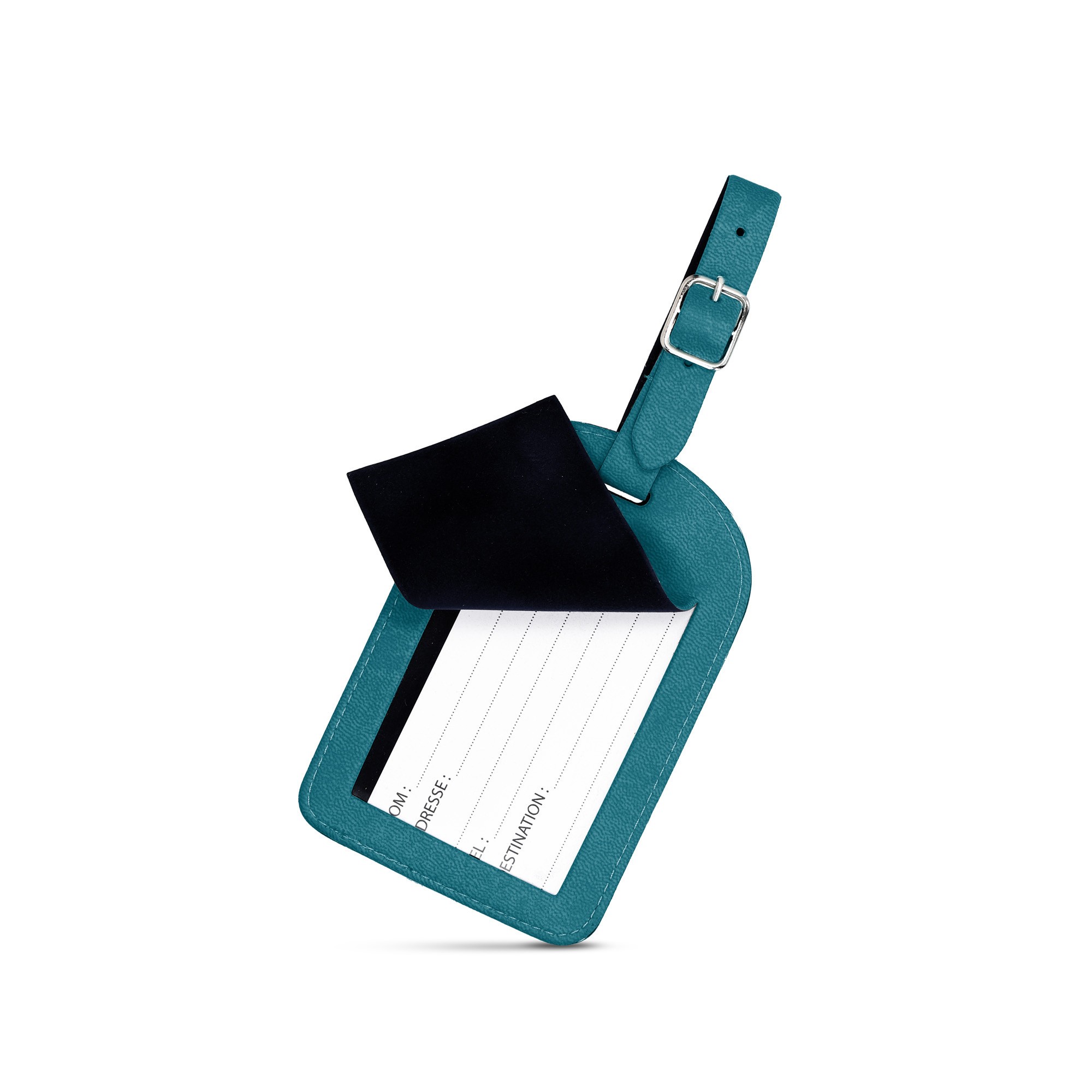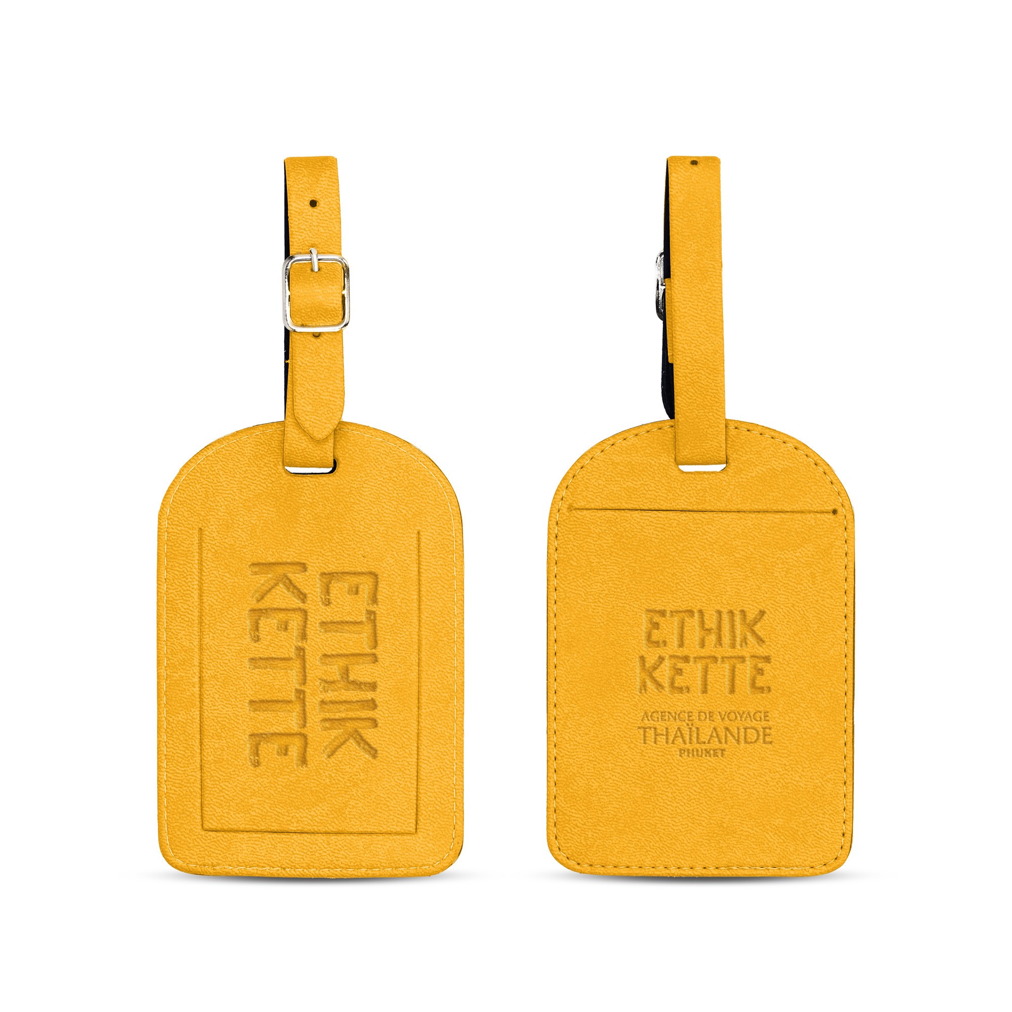 Etiquette à bagage avec étiquette de coordonnées incluse et choix de la couleur du fil. Possibilité de marquage en creux ou dorure sur demande. Fabriqué et imprimé en France.