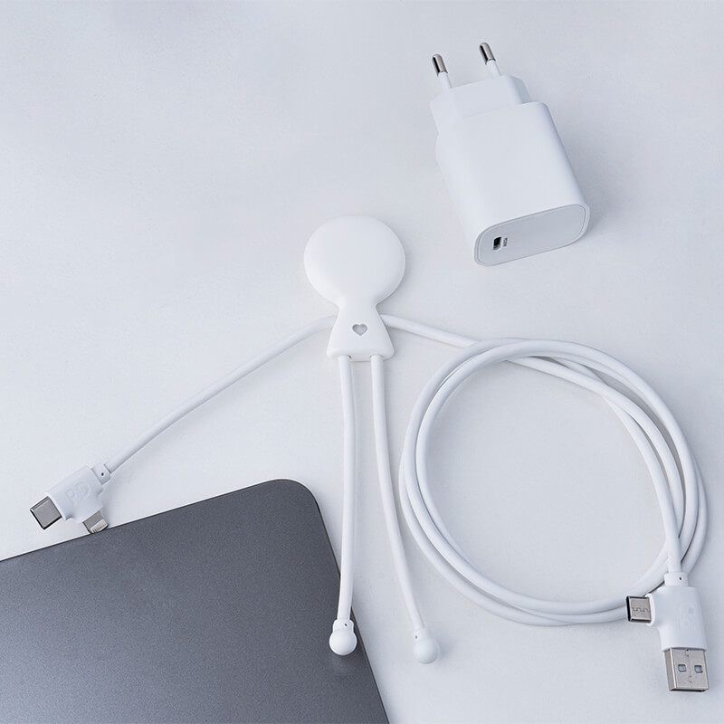 Le pack fun et attachant pour chargement rapide ! Chargez vos appareils de manière rapide et simple grâce au Mr Bio Fast Pack où que vous soyez. Pour les specs : Câble d’un mètre de longueur : Multi-câbles d’un mètre de long Entrée : USB-C et USB Sortie : Lightning, USB-C Transfert de données Chargement rapide (60W) avec indicateur lumineux : le cœur s’allume et une Led verte apparaît Fonctionnalité CarPlay Compatible avec tous les appareils dernière génération Adaptateur : Entrée USB-C Prise secteur 20 W pour charge rapide Compatibilité Iphone >8+, iPad Aire, Ipad Pro, Samsung, Huawei, Oppo, Vivo, Sony, Xiaomi’ Produit : Recharge 50% de votre smartphone en 30 minutes Produit garantie 2 ans Le câble d’un mètre de longueur pour chargement rapide est développé dans une démarche de progrès. On vous explique tout : 20% du volume total du câble est fabriqué à partir de plastique recyclé Packaging en papier certifié FSC issu d’une exploitation forestière, disposant d’une gestion durable. Fabriqué en Chine.