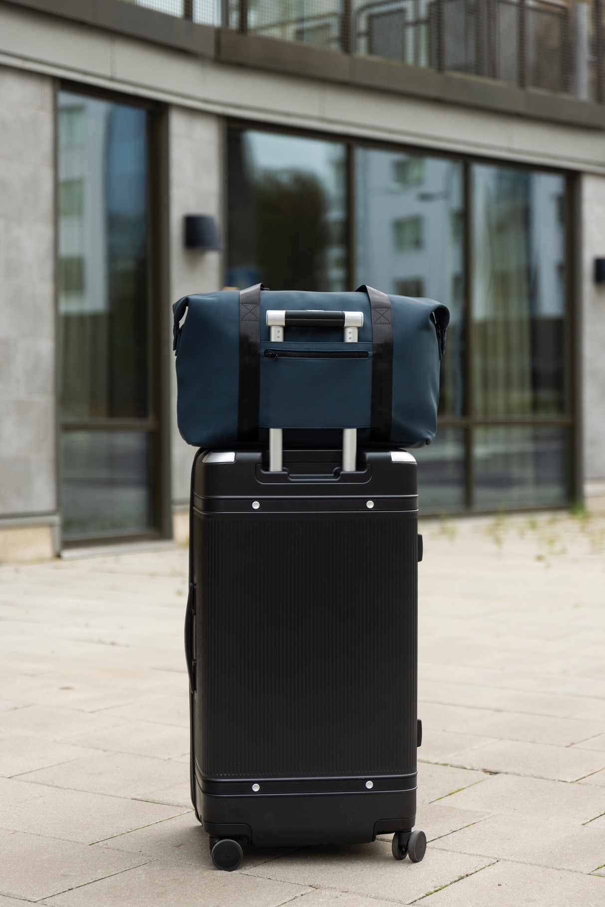 Un sac de voyage pour le week-end, fabriqué en partie en polyester recyclé certifié RCS et recouvert d’un élégant revêtement en PU. Conçu pour contenir tout ce dont vous avez besoin pour une escapade d’une ou deux nuits. Fixez simplement votre sac à votre trolley grâce à une astucieuse pochette à zip 2 en 1. Il est doté de deux sangles de transport confortables et d’une bandoulière réglable amovible. A l’intérieur, une petite poche zippée pour vos affaires essentielles. Certifié par RCS (Recycled Claim Standard), la certification RCS garantit que l’ensemble de la chaîne d’approvisionnement en matériaux recyclés est certifiée. Le contenu recyclé total est basé sur le poids total du produit. Ce produit contient 20 % de polyester recyclé certifié RCS. Fabriqué en Chine avec empreinte carbone de 6.84kg EqCO².