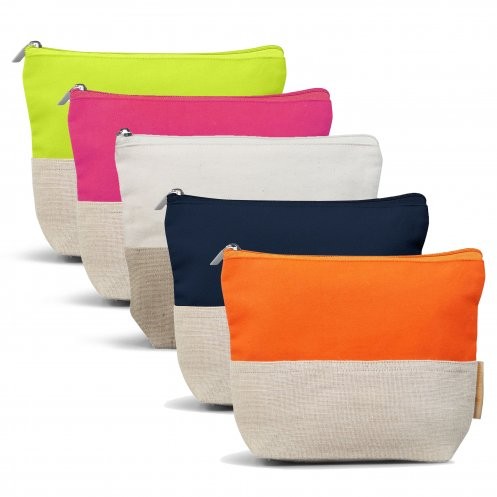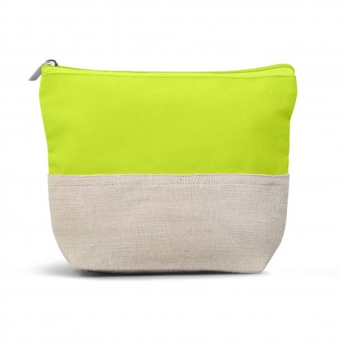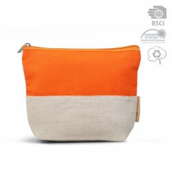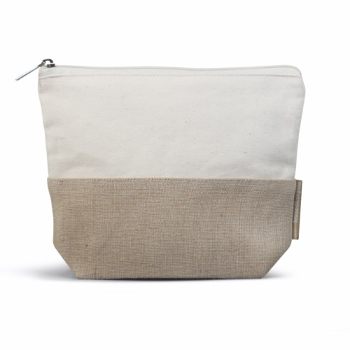 Trousse de voyage ou cosmétiques en coton biologique et jute – 280gr/m², matière première issue de filière certifiée GOTS, avec fermeture zippée, doublure coton biologique. Fabriqué en Inde.