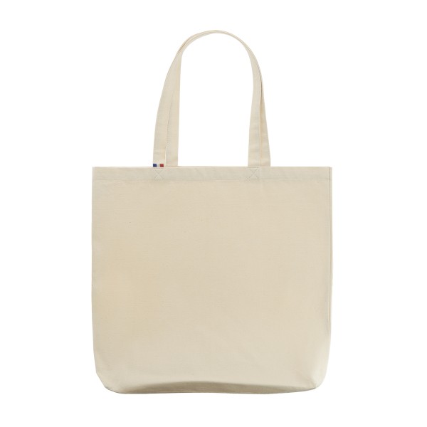 Sac shopping confectionné en France, supporte une charge maximale de 8-9 kg. Tissage du coton en France. Coton certifié Oeko-Tex 240 gr./m².