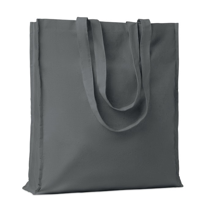 Sac shopping en coton avec anses longues et soufflets. 140gr/m². Produit sous une norme certifiée pour l’utilisation de substances nocives dans le textile. Fabriqué en Chine.