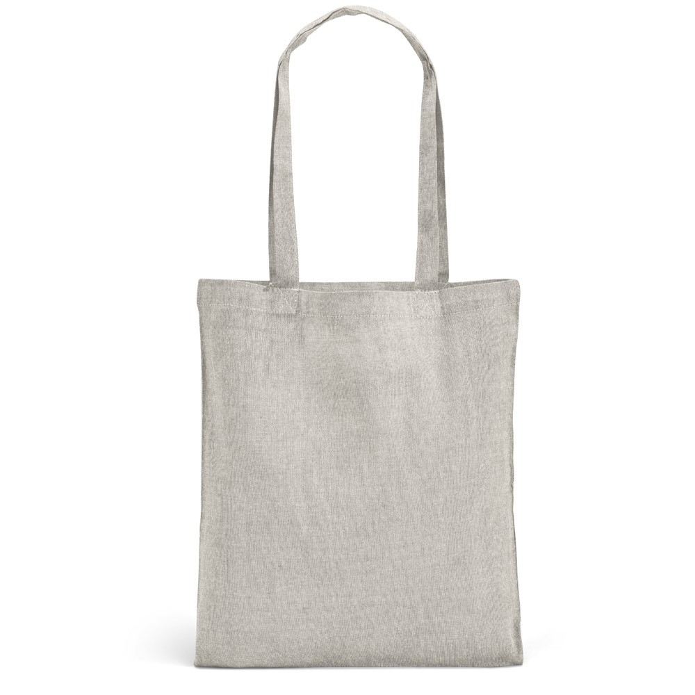 Sac avec coton recyclé (70%) et polyester recyclé (30%) (140 g/m²) avec anses de 60 cm. Fabriqué en Inde.