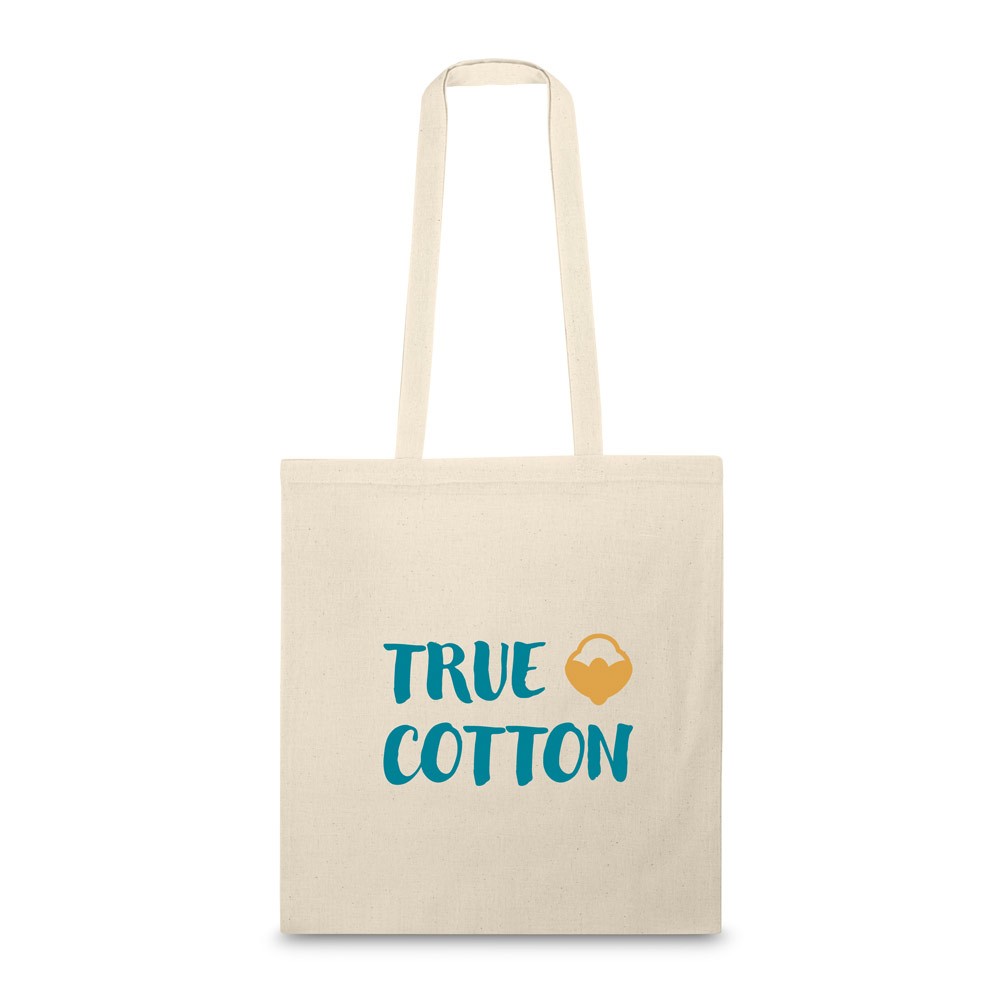 Sac coton 110gr/m² avec anses de 75 cm. Fabriqué en Inde.