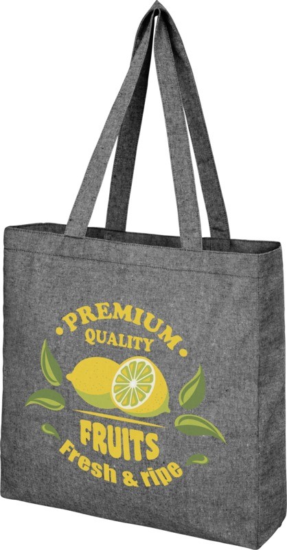 Sac shopping en mélange de coton et polyester recyclé 210 g/m². Le coton recyclé est fabriqué à partir de déchets de pré consommation générés par les usines textiles pendant le processus de coupe. Sac shopping à soufflets et grand compartiment principal. Comprend deux poignées avec une hauteur de 31 cm. Résistance aux charges de 10 kg. Il peut y avoir des variations mineures dans la couleur du produit en raison de la nature du processus de production.