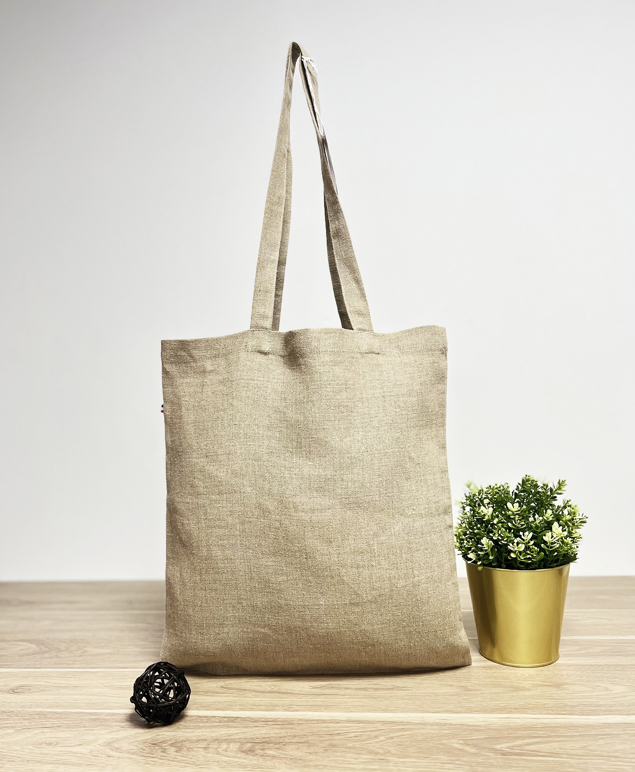 Sac shopping 300gr/m² 100% lin origine France, tissé en France, certifié GRS. Anses de 70 cm.