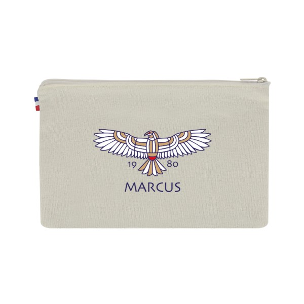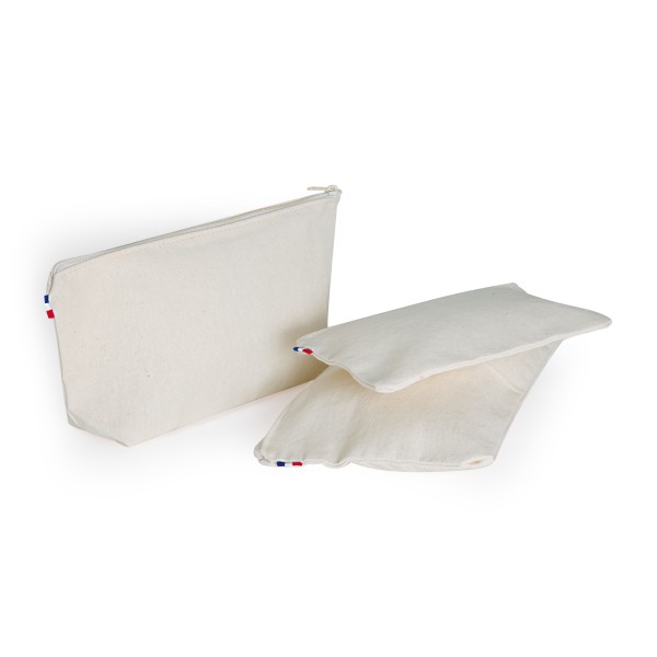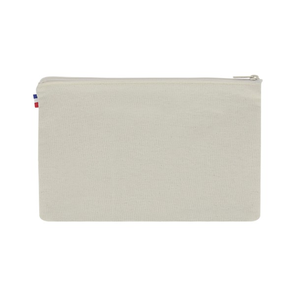 Pochette confectionnée en France. Tissage du coton en France. Coton recyclé 250 gr./m²