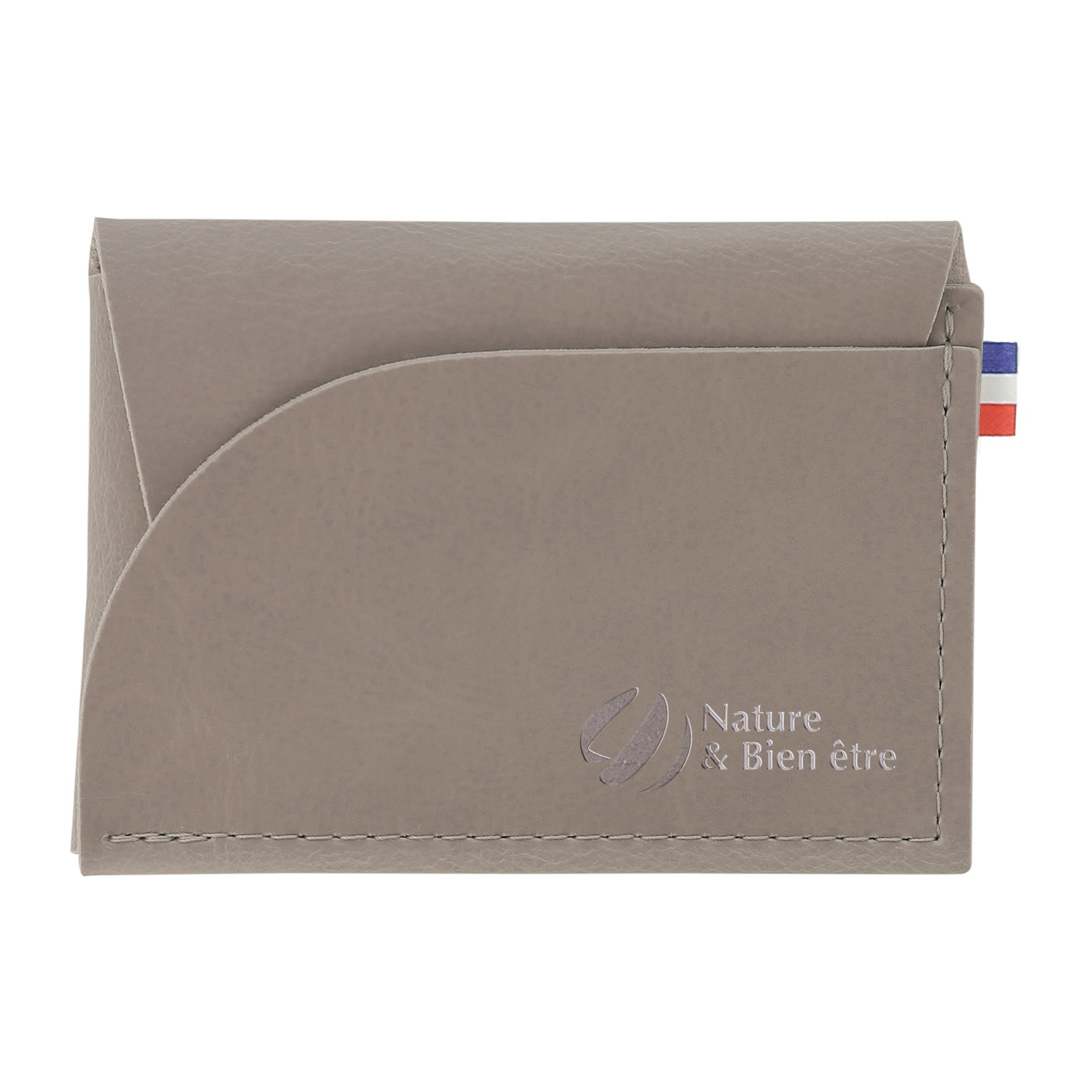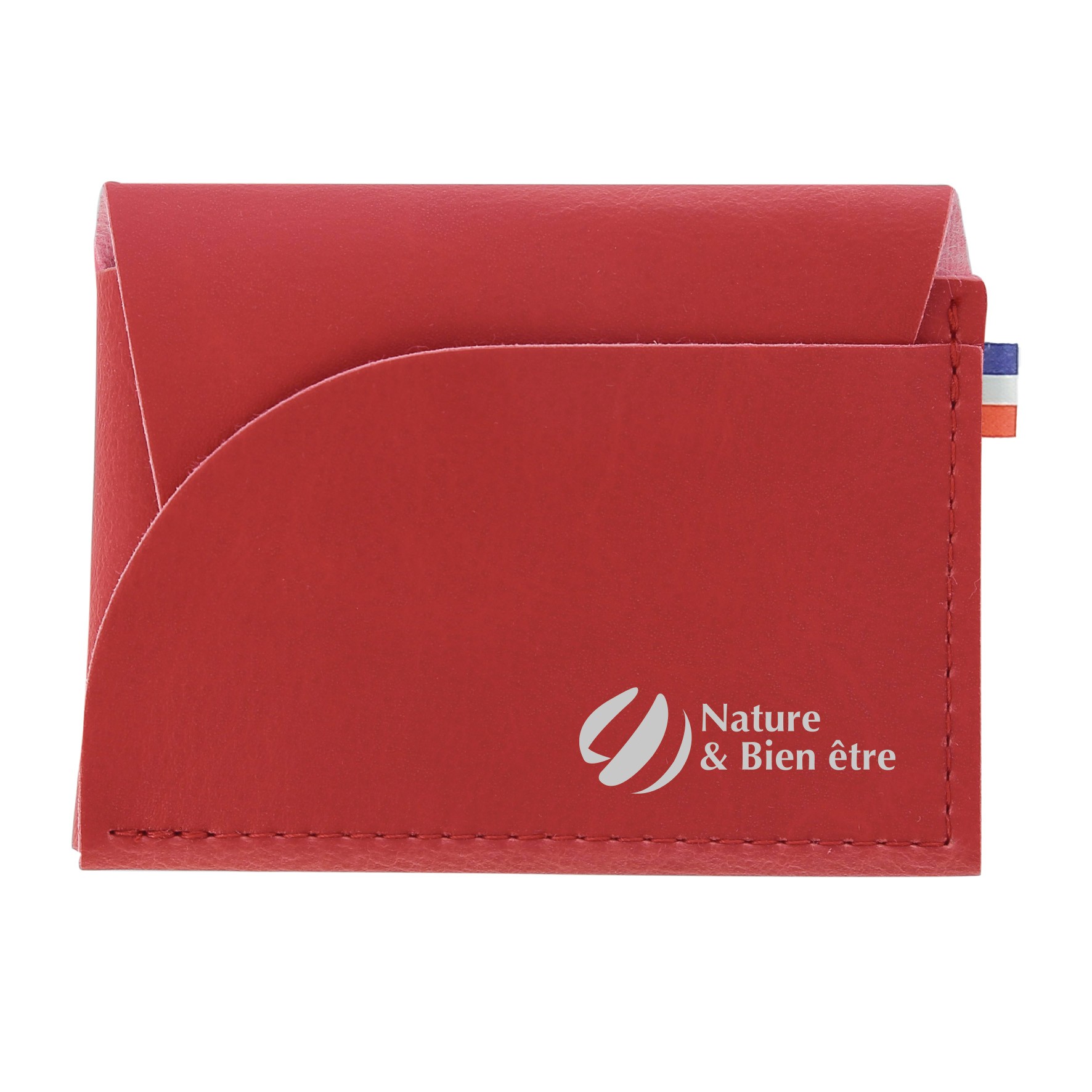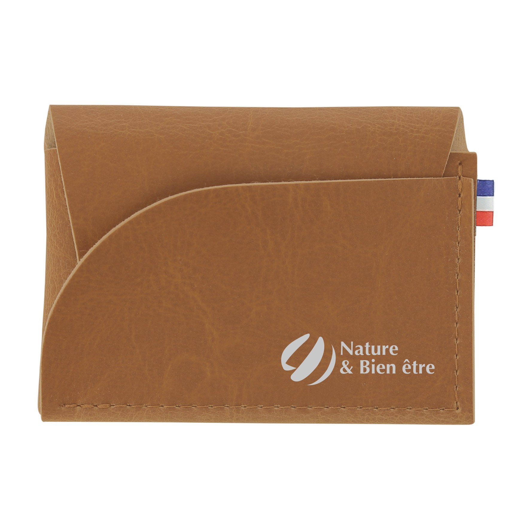 Porte-monnaie avec rabat avec 69% de matière végétale et 31% de polyuréthane. Un marquage 1 couleur 1 position et frais techniques inclus.