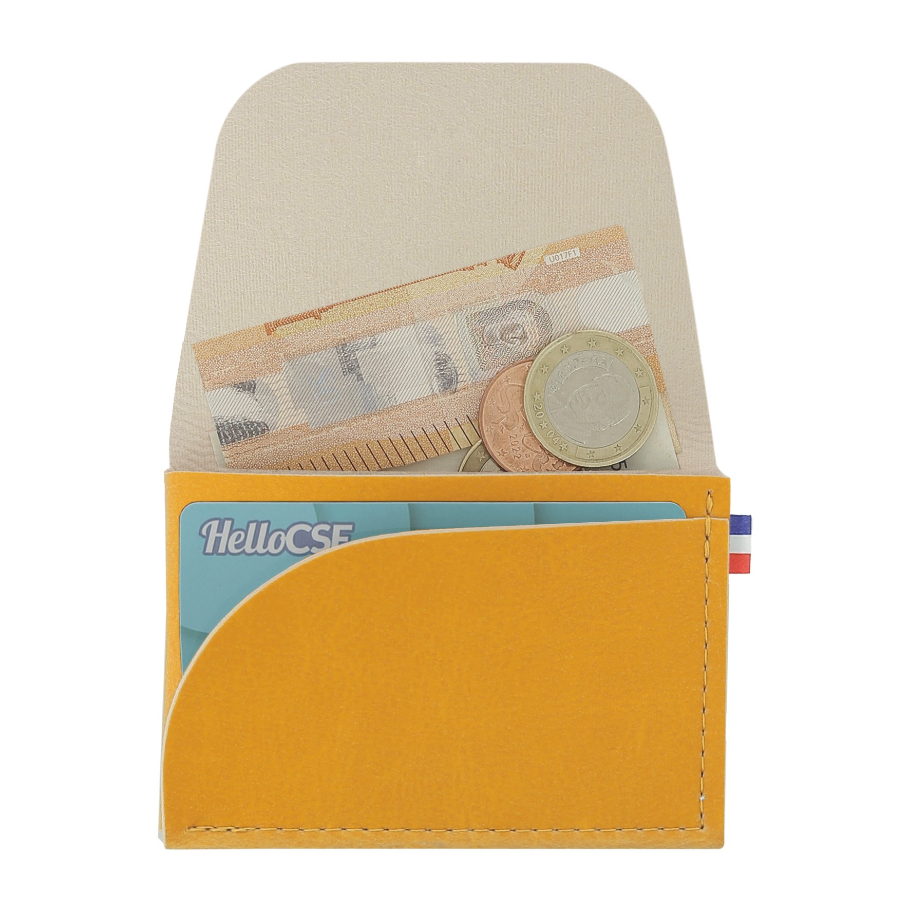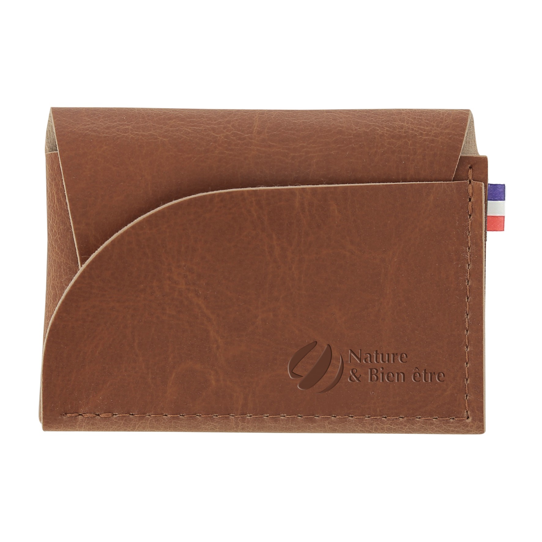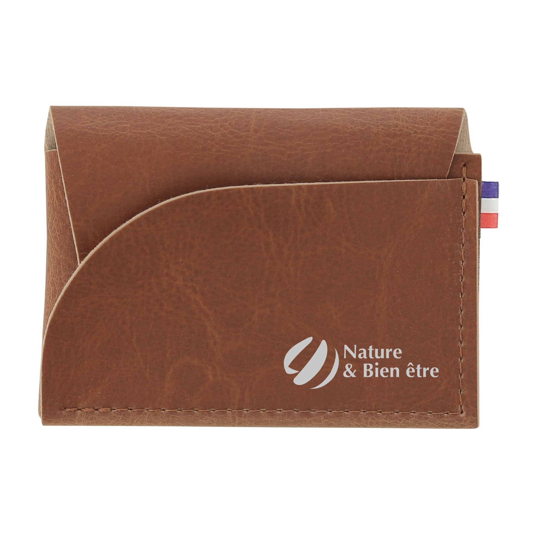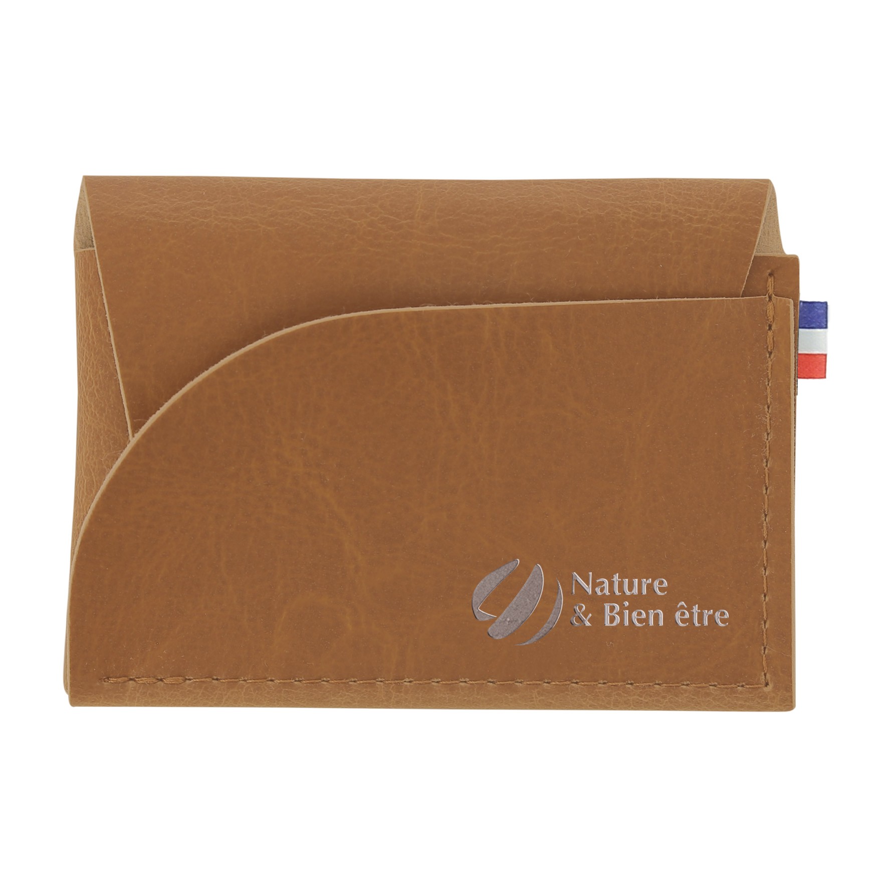 Porte-monnaie avec rabat avec 69% de matière végétale et 31% de polyuréthane. Un marquage 1 couleur 1 position et frais techniques inclus.