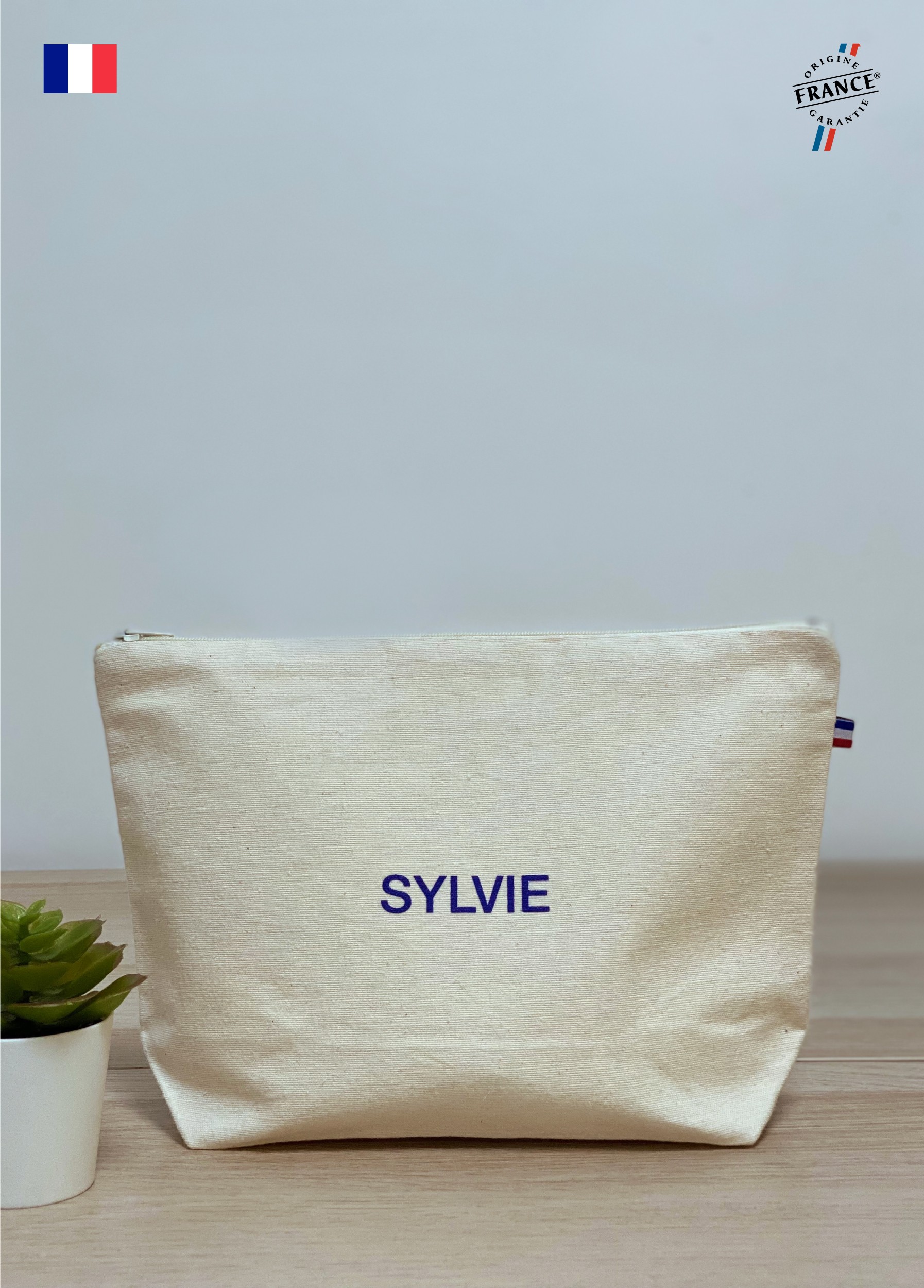 Trousse 250gr/m² coton bio et recyclé, origine et tissé en France, certifié GRS. Zip nylon, ORIGINE FRANCE GARANTIE. Possibilité de dimension supérieure : 27*18 cm et 27*18+8 cm de soufflet (sur demande)
