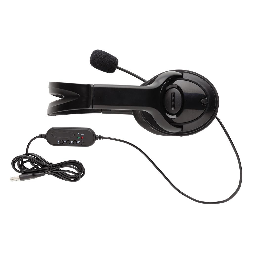 Casque en ABS pour PC avec contrôle du volume filaire et une qualité de son stéréo parfaite pour des conversations claires pendant les appels. Compatible avec les PC et les Mac®. Avec un câble USB A de 2 mètres pour une connexion optimale avec n’importe quel ordinateur. Parfait pour les appels et les conférences vidéo.