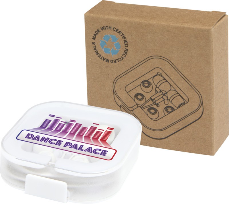 Casque filaire Type-C avec son de haute qualité, doté d’un microphone intégré pour les appels mains libres. Livré dans une boîte de rangement élégante en plastique recyclé. Fabriqué en Chine en plastique recyclé ABS.