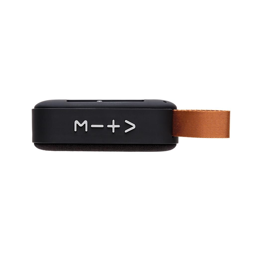 Haut-parleur 3W avec corps en ABS et finition soft touch, grille en tissu et le bas de l’enceinte est muni de bandes en caoutchouc pour une meilleure qualité sonore et une meilleure prise en main. Batterie 300 mAh pour une autonomie jusqu’à 3 heures sur une seule charge et une distance de connexion jusqu’à 10 mètres avec BT 5.0. Avec un micro-câble pour charger le haut-parleur et un câble audio pour connecter l’appareil à votre téléphone sans connexion sans fil. Fabriqué en Chine.
