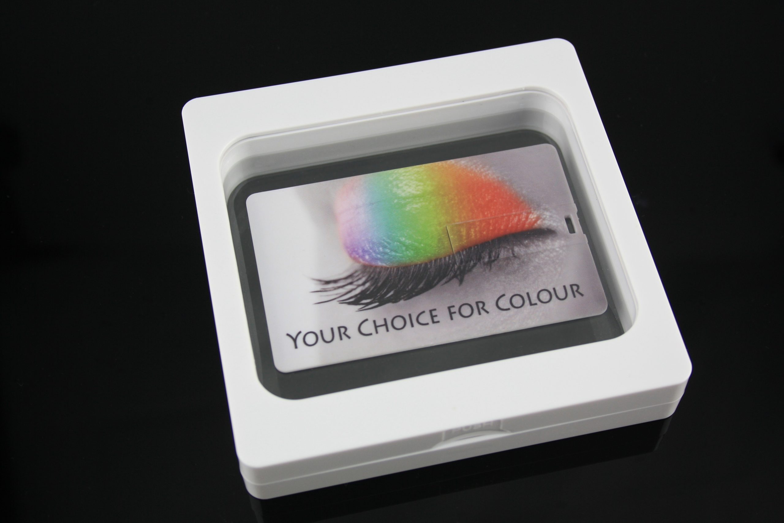 La clé USB format carte de crédit est ultra-fine, offre une surface d’impression 100 % et a la taille d’une carte de crédit standard. De 4 à 128 Go et existe également en 3.0. L’impression recto verso en couleur haute qualité est possible. Des impressions individuelles sont également envisageables; cette clé USB peut ainsi servir de carte de visite, par exemple.. Prix sur demande.