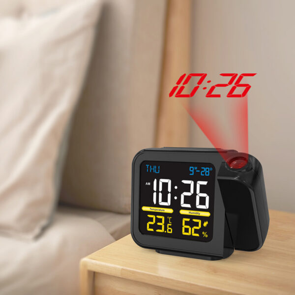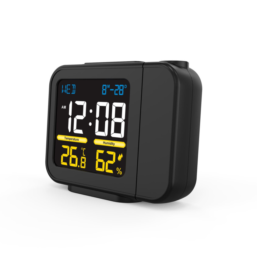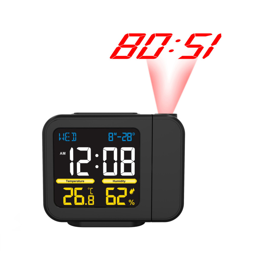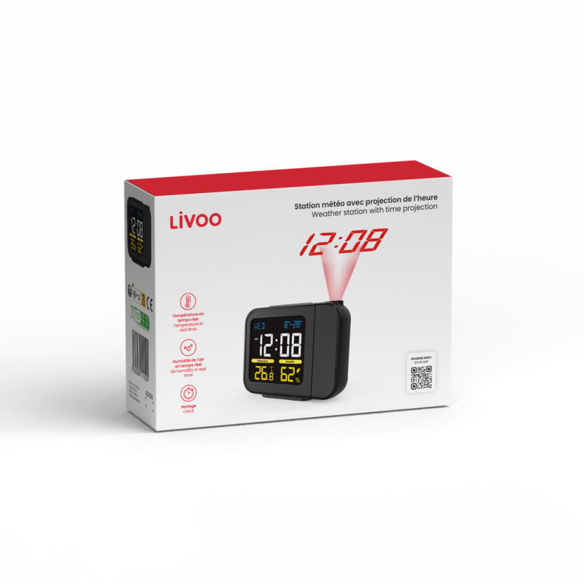 Projection de l’heure avec direction de projection réglable, thermomètre et hygromètre intérieur. Mémorisation des températures et hygrométrie min et max. Affichage en couleur et calendrier perpétuel. Horloge et alarme, fonction snooze et alimentation USB-C 1M.