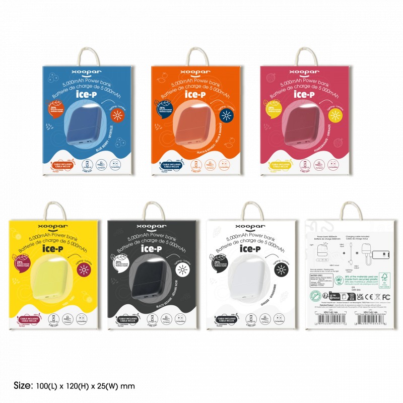 L’ICE-P vous permet de recharger rapidement vos appareils afin de ne jamais vous perdre et sa lumière LED intégrée éclaire votre chemin ! 28% plastique recyclé certifié GRS et 2% PC recyclé. Jusqu’à 2 charges, cable de 10 cm, Sortie lightning & USB-C, entrée USB-C et packaging en papier certifié FSC issu d’une exploitation forestière, disposant d’une gestion durable.