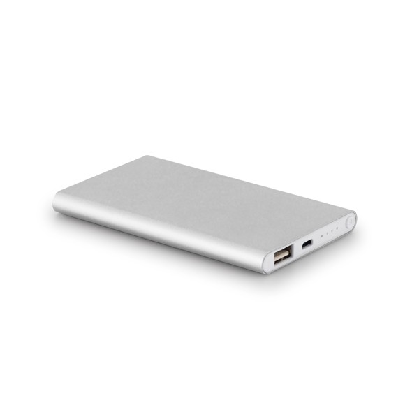 Banque d’alimentation en aluminium recyclé (100% rAL) et ABS recyclé (100 % rABS), au design fin. Batterie portable d’une capacité de 4 000 mAh, indicateur de niveau de charge, une entrée USB-C et une sortie USB-A. Comprend un câble de charge USB-C. Fourni dans une boîte cadeau en papier kraft recyclé. Fabriqué en Chine.
