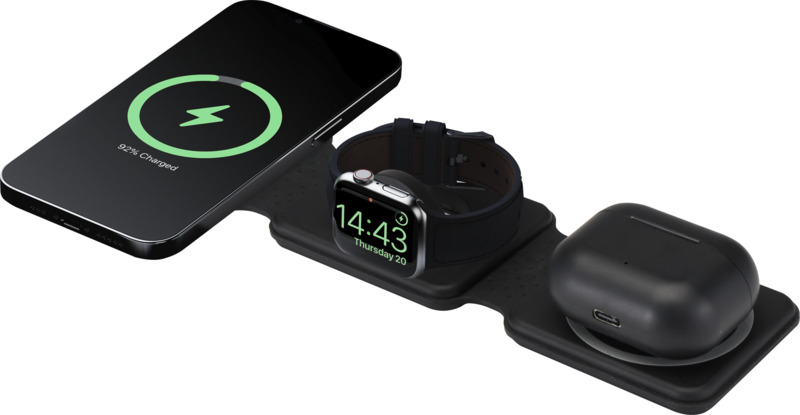 Le chargeur sans fil 3-en-1 ARMUS est fabriqué à partir de plastique recyclé et peut alimenter un smartphone, des AirPods et une iWatch en même temps, avec une vitesse de charge sans fil allant jusqu’à 15 W. Sa conception pliable et magnétique vous permet de placer votre téléphone en mode paysage pour visionner du contenu dessus tout en le chargeant. Compatible avec tous les téléphones à recharge sans fil, y compris l’iPhone 12 et les modèles plus récents (ou les téléphones dotés d’un anneau magnétique). Connecteur Type-C inclus. Fabriqué en Chine et imprimé en Europe.
