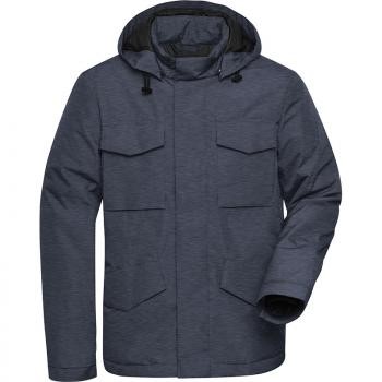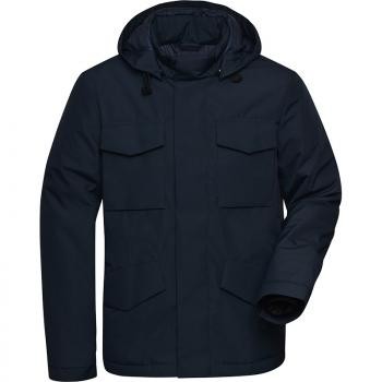 Veste hiver Homme 100% polyester Dupont Sorona® : Fibres issues de ressources renouvelables et permettant le maintien de la chaleur, 5 000 mm de colonne d’eau et 1500 gr d’évaporation en 24h. Capuche doublée amovible avec cordon de serrage, fermetures zippées YKK avec rabat velcro, 2 poches poitrine, 2 poches avants avec rabat, poche intérieure zippée, ouverture jeannette et coupe droite. Disponible également en modèle femme sur demande.
