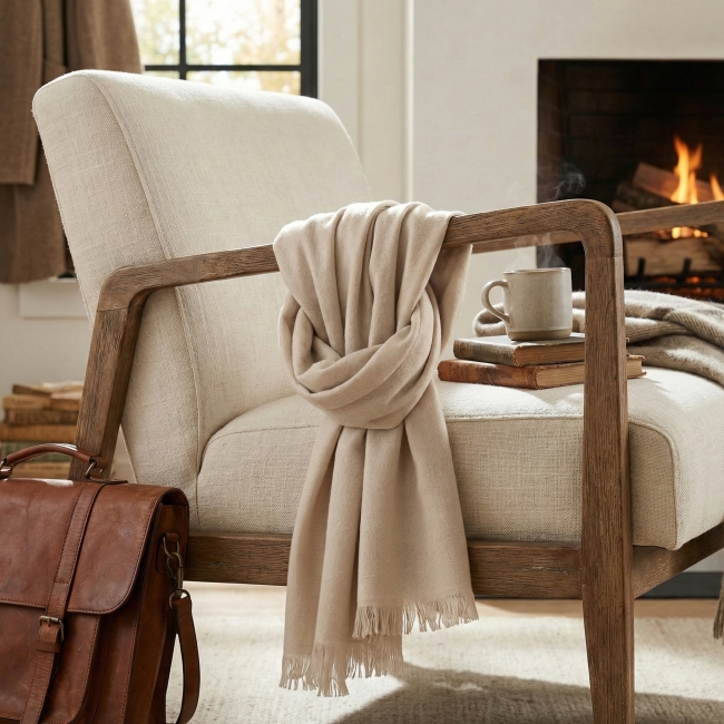 Echarpe avec tissage jacquard et finition grattée 100% coton biologique 130gr. Livré sous boite carton, fabriqué et imprimé en France avec puce bleu/blanc/rouge.