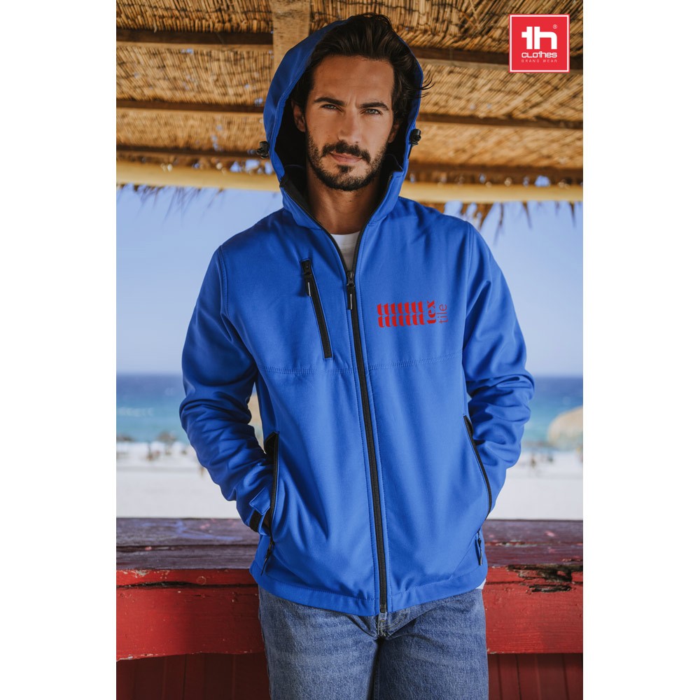Veste Softshell pour homme en 96% polyester et 4% élasthanne (280 g/m²), avec deux couches, capuche amovible et revêtement résistant à l’eau. Veste doublée en polaire avec 2 poches avant et une poche diagonale sur la poitrine, toutes zippées. Poignets réglables en autoagrippante (scratch) . Capuche amovible avec cordon de serrage et fermeture autoagrippante (scratch) pour l’attacher au col. Ourlet arrondi dans le dos. Fabriqué au Bangladesh.
