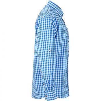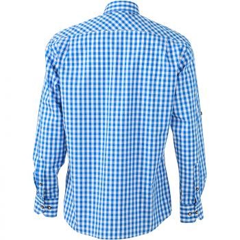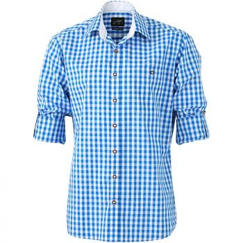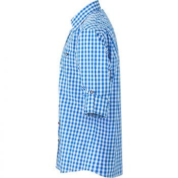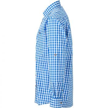 La chemise traditionnelle à carreaux homme en 100% coton popeline 100gr/m² de haute qualité se porte à l’occasion d’une fête folklorique ou d’une soirée costumée. Rien ne l’empêche d’être associée à des pièces plus classiques au quotidien. Fermeture boutonnée en imitation corne, empiècement blanc au col, manches retroussables avec pattes de fixation et 2 plis dorsaux. Coupe droite à base arrondie, poche poitrine, traitement Easy Care pour un entretien facile et disponible également en version femme sur demande.