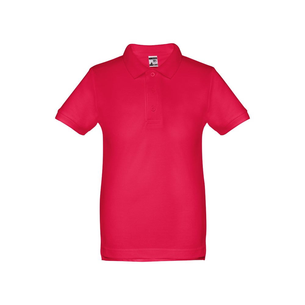 Polo à manches courtes pour enfant (unisexe) en maille piquée 100% coton (195 g/m²). Contient un col et des manches côtelés, le col est renforcé avec du ruban piqué. Sur le devant, à côté du col, il y a trois boutons colorés (bouton de remplacement inséré dans la couture intérieure) et patte de boutonnage renforcée. Pièce coupée et cousue avec de petites ouvertures latérales sur la partie inférieure. Fabriqué au Bangladesh.