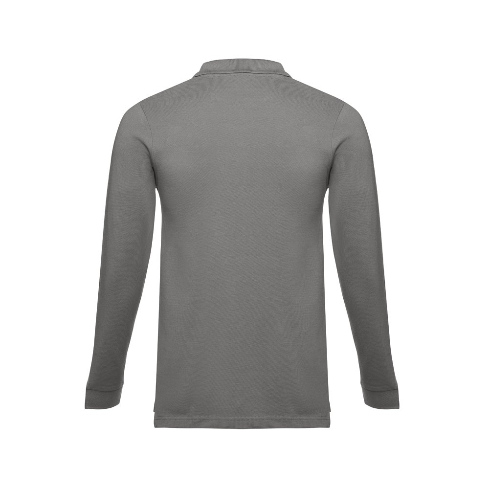 Polo à manches longues pour homme en maille piquée 100% coton (210 g/m²). Polo de coupe classique avec col et poignets côtelés, le col est renforcé par une bande en mesh piqué. Contient une patte de boutonnage renforcée avec 3 boutons colorés (bouton de remplacement inséré dans la couture intérieure). Pièce découpée et cousue avec ouvertures latérales en bas. Étiquette amovible visible. Fabriqué au Bangladesh.