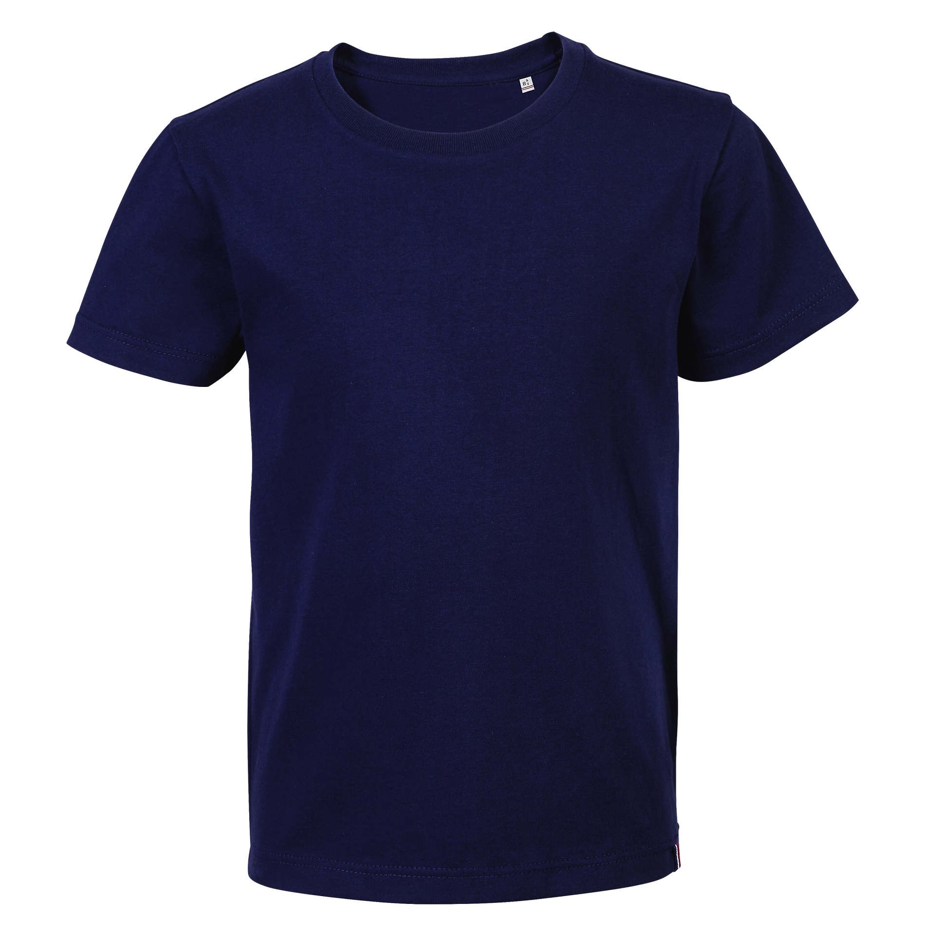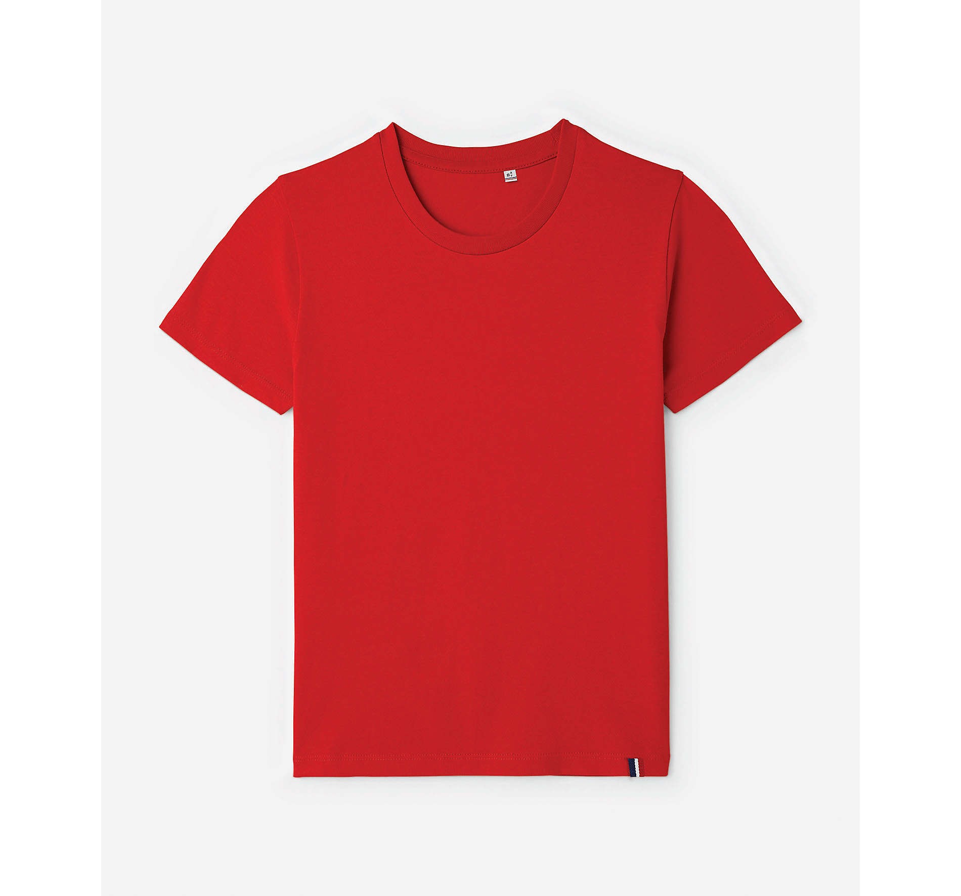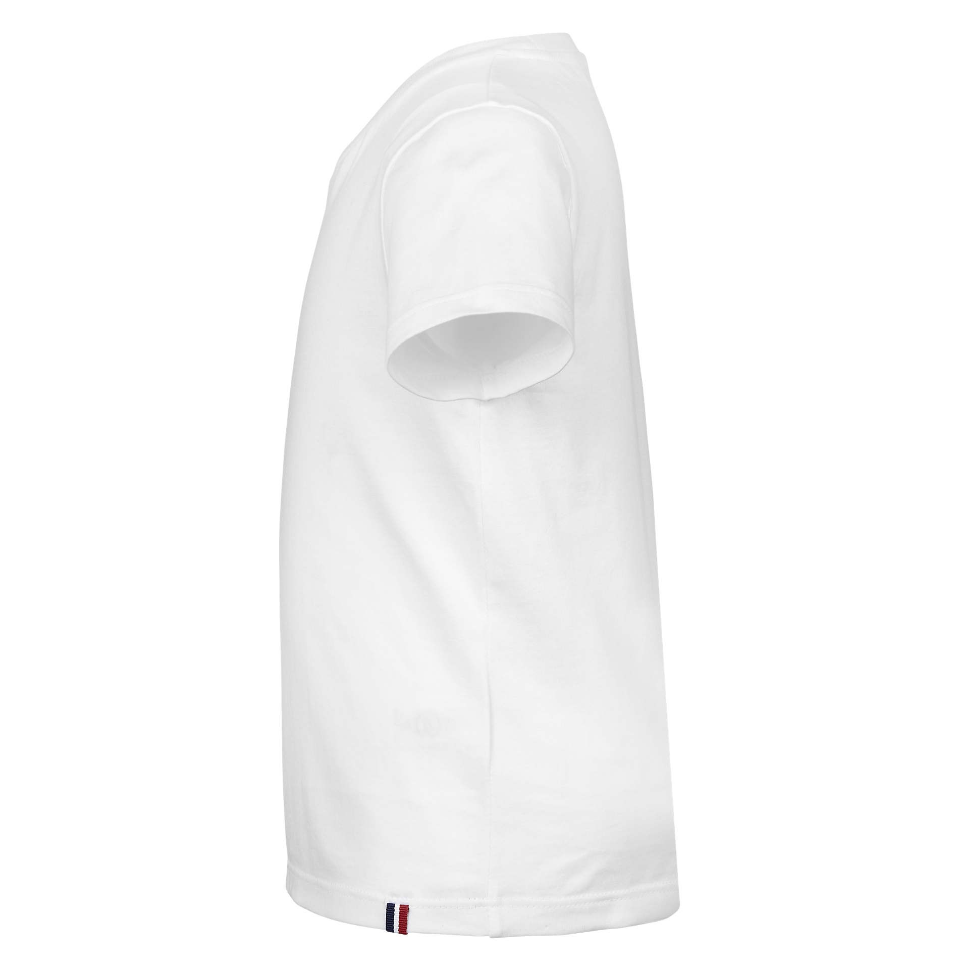 T-Shirt col rond jersey 150 gr/m² 100% coton peigné et bord côte 100% coton. Bande de propreté au col, coupe ajustée, coupé cousu et détail tricolore en bas du corps.