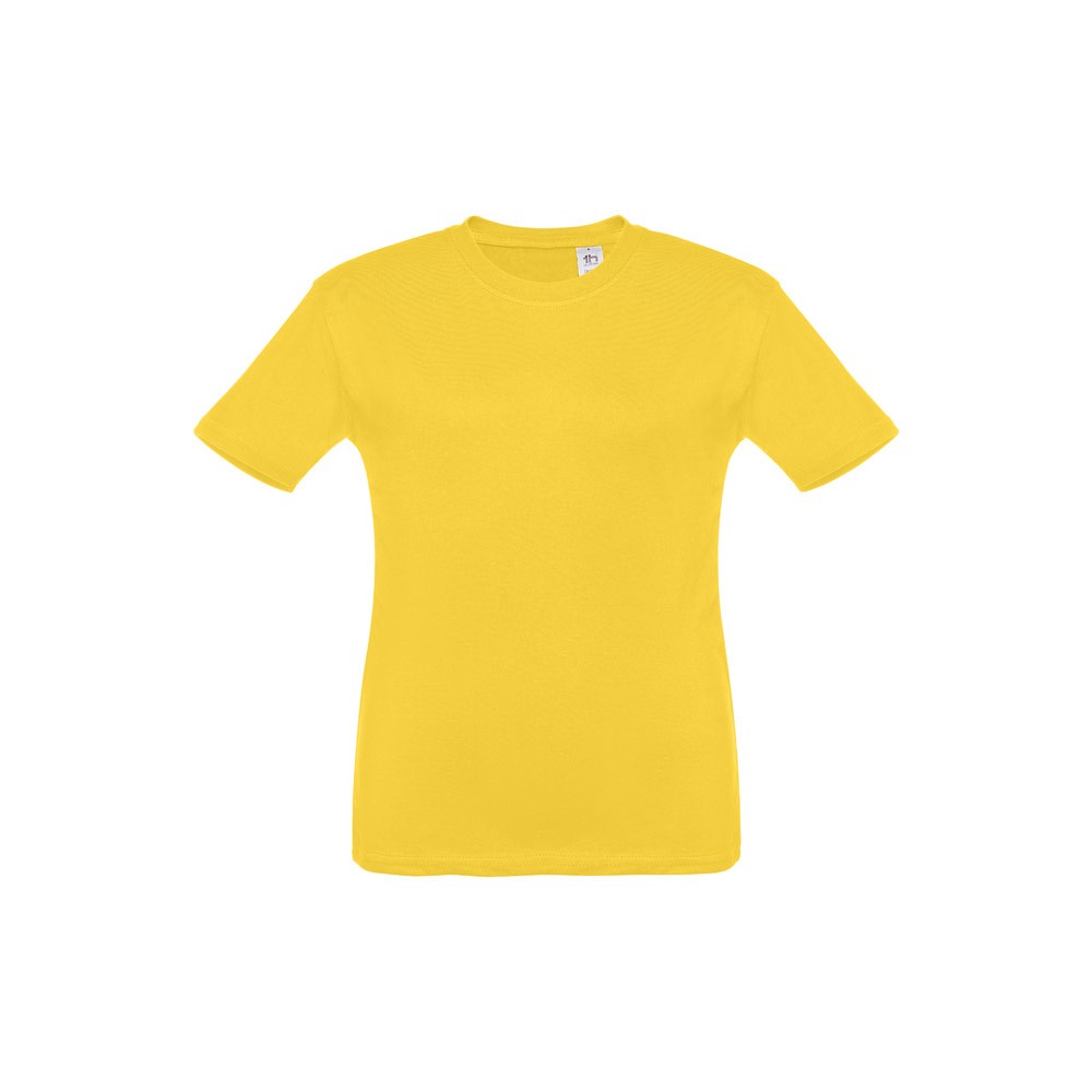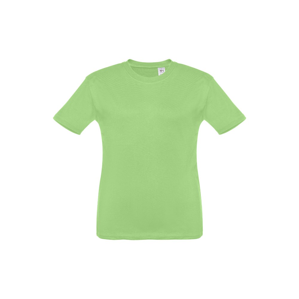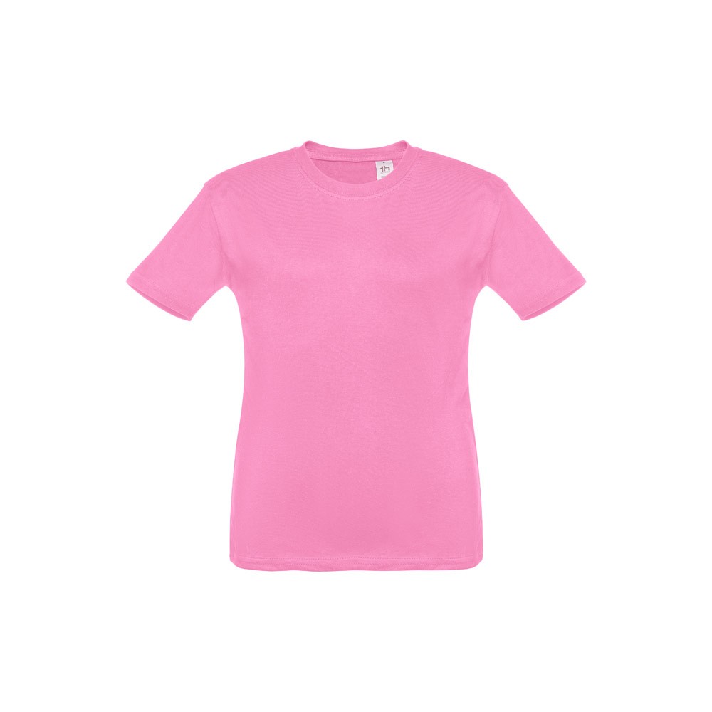 T-shirt pour enfant (unisexe) en maille jersey 100% coton (150 g/m²) avec fil de coton cardé. Contient un col côtelé 1×1 avec bande de renfort en jersey. Pièce coupée et cousue avec double couture sur les manches et le bas. Fabriqué au Bangladesh.