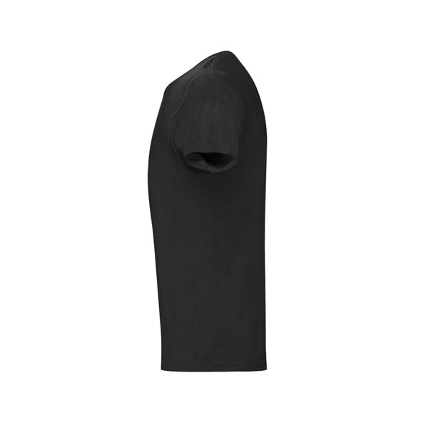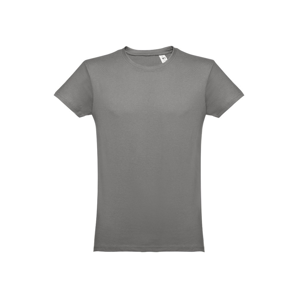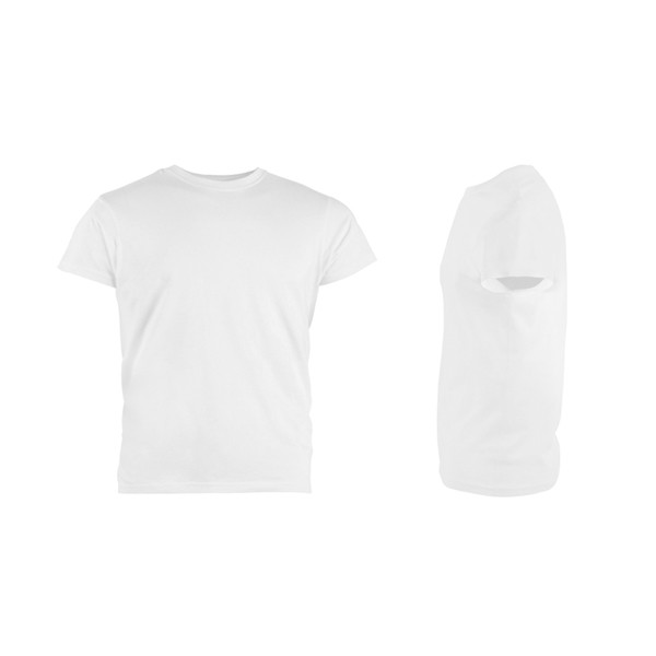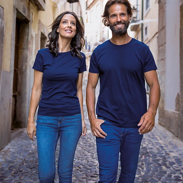T-shirt pour homme, existe en modèle femme en jersey 100% cotton 150 g/m² (coloris gris chiné : 90% coton/10% viscose), col bord côte 1×1 et bande de propreté en jersey. Double surpiqures sur les manches et partie inférieure, modèle tubulaire. Fabriqué au Bangladesh.