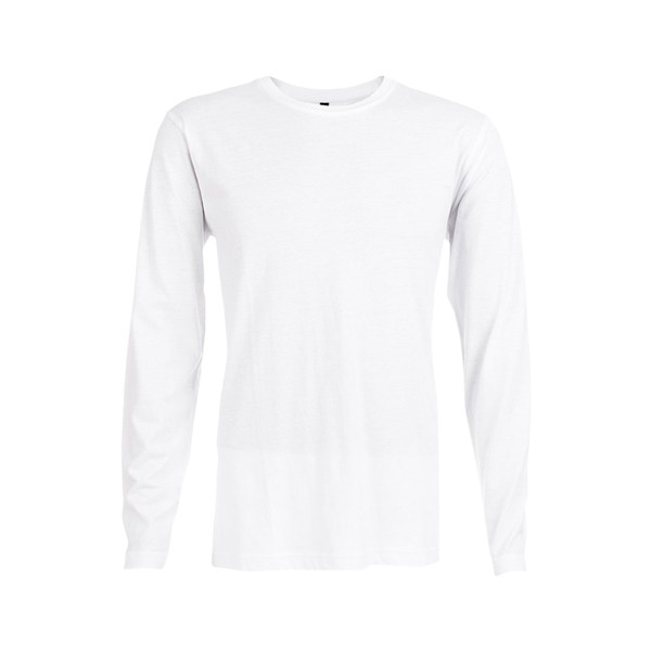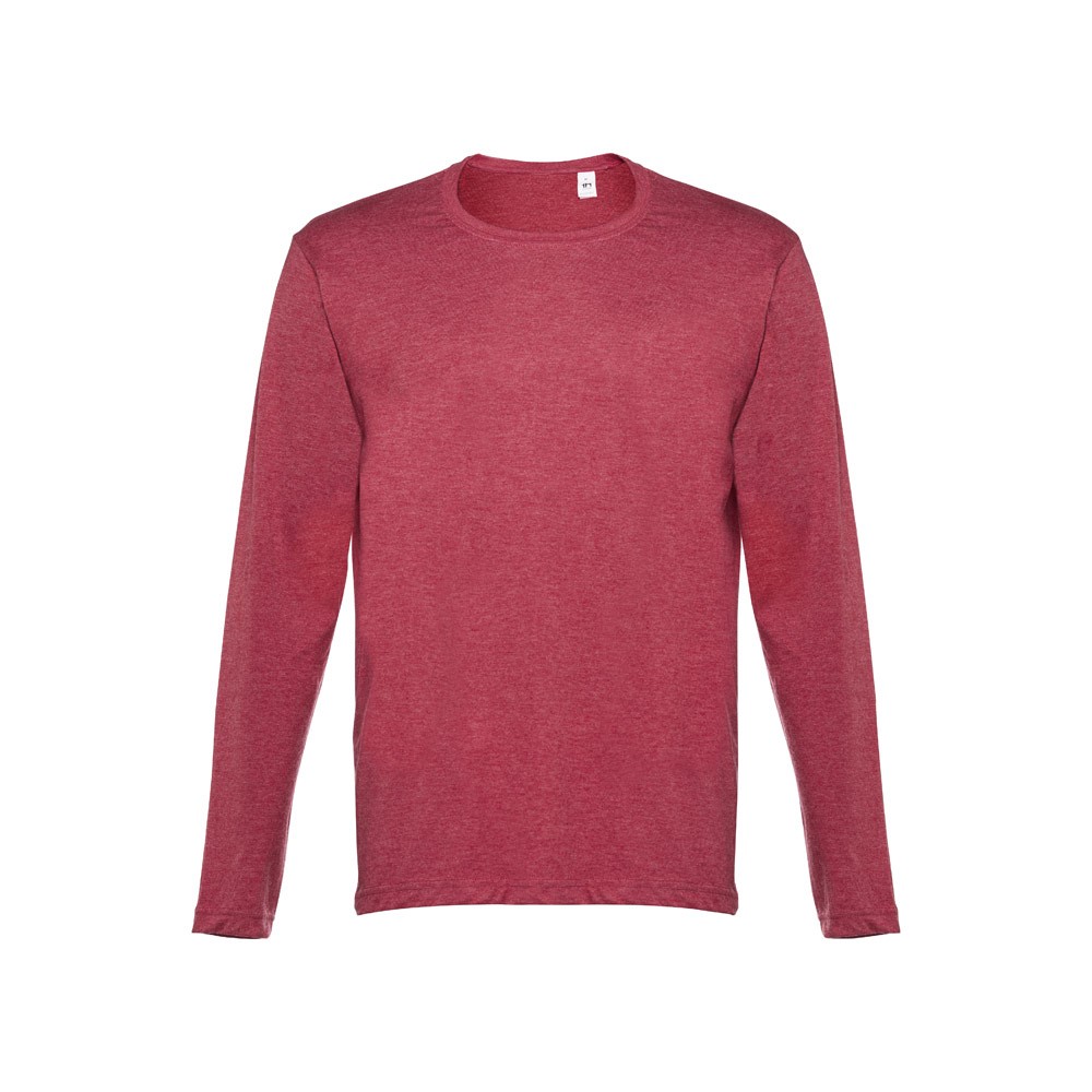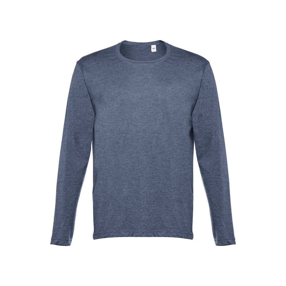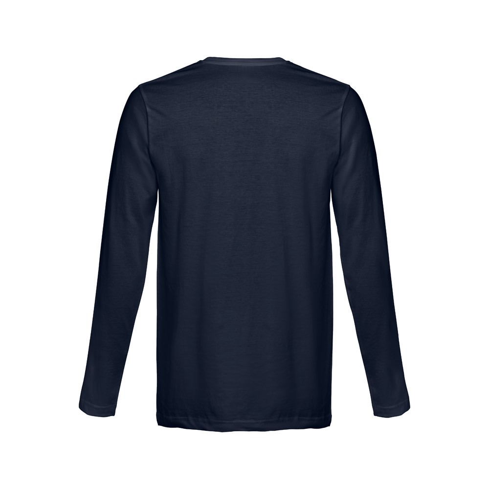 T-shirt manches longues pour homme en maille jersey 100% coton (150 g/m²) avec fil de coton cardé. Col côtelé 1×1 et bande de renfort en jersey. T-shirt tubulaire avec coupe régulière et double couture sur les manches et le bas. Fabriqué au Banglasedh.