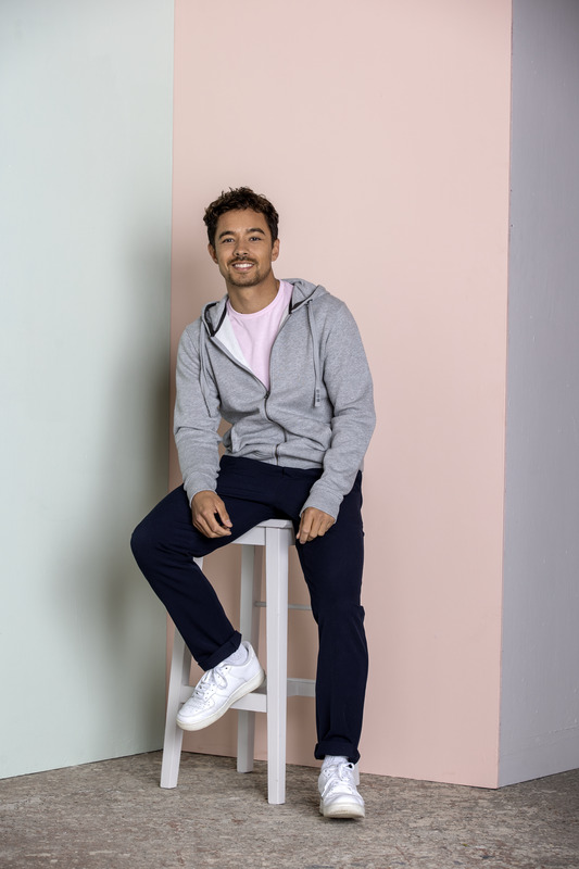 Panneaux latéraux, côtes en tricot plat. Poignets côtes en tricot plat. Ourlet du bas en côte tricot plat. Cordon de serrage à la capuche. Poche kangourou. Demi-lune. Doublure en jersey à l’intérieur de la capuche. Œillets argent vieilli avec logo gravé. Bande de propreté en satin. Bande en chevron de couleur contrastée. Tricot80% Coton et 20% Polyester, 300 g/m². Fabriqué au Bengladesh.