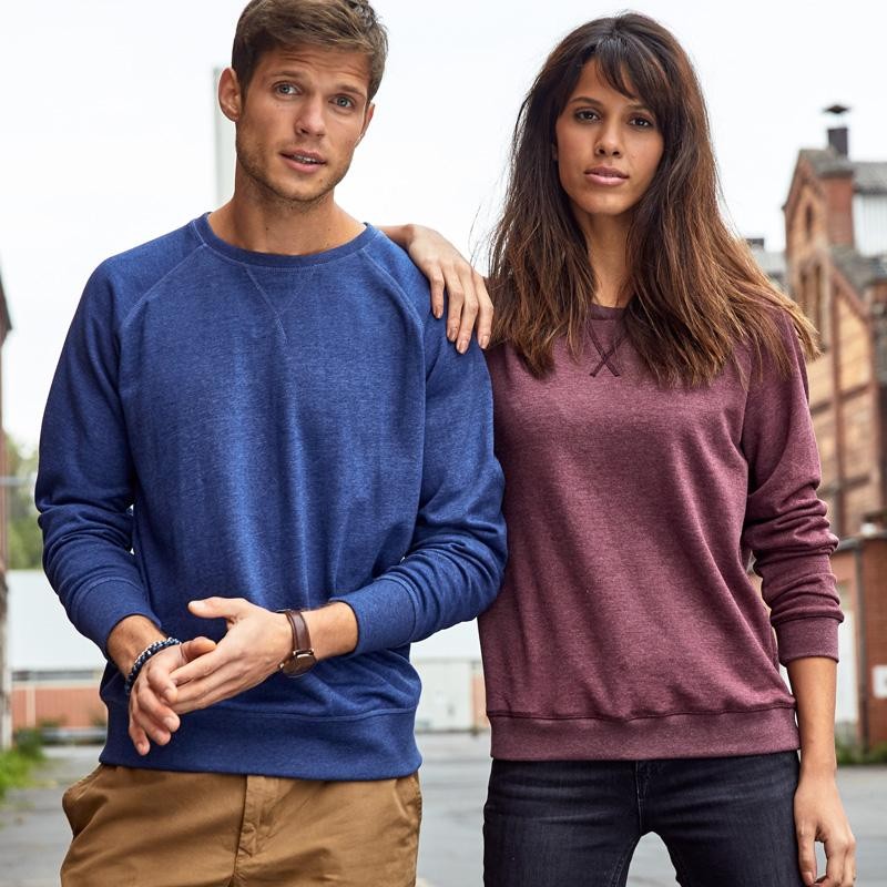 Ce sweat-shirt a les arguments pour séduire: 85% de coton bio ring spun peigné et 15% polyester 300gr/m², un intérieur en french terry de haute qualité, des finitions et une coupe soignées. Sans aucun doute une pièce de choix. Bande de propreté ton sur ton, poche poitrine, manches raglan, col rond avec élasthanne et manchettes en élasthanne. Étiquette Tear Off® détachable et certificat Bio OCS Blended 85%.