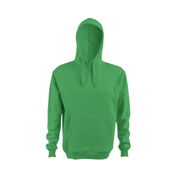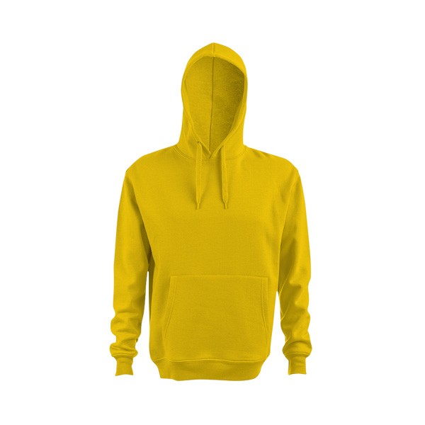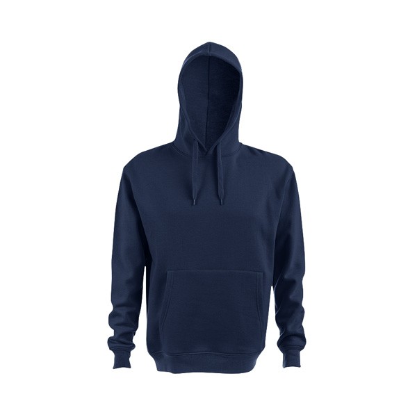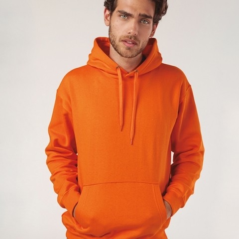 Sweatshirt (unisexe) avec capuche en 50% coton et 50% polyester (320 g/m²) et intérieur molleton. La capuche comprend des œillets et un cordon de serrage coloré. Sweatshirt avec poche marsupiale et côte 1×1 aux poignets et à la taille. Fabriqué au Bangladesh.