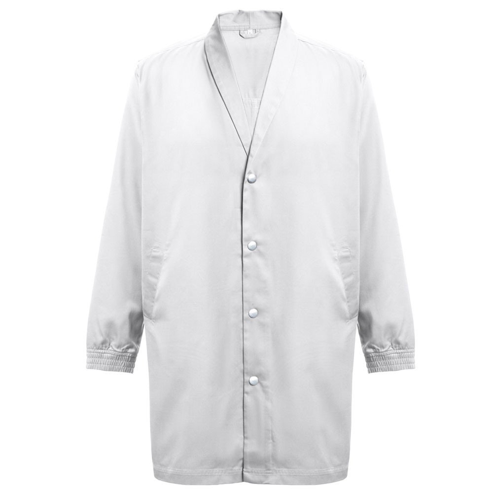 Uniforme de travail (unisexe) en 20% coton et 80% polyester (190 g/m²). Coupe élégante et moderne avec col stylisé et 2 poches latérales. Poignets avec élastique et boutonnage avec ressorts de pression. Ouverture à l’arrière, pour une meilleure liberté de mouvement.Fabriqué au Bangladesh.