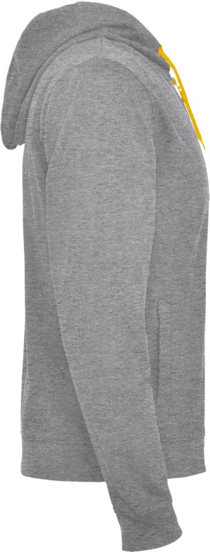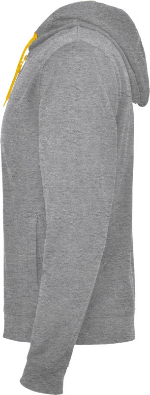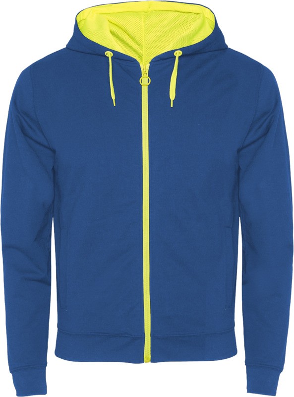 Veste de survêtement en polaire non brossée avec détails en couleur fluo. Fermeture à glissière centrale avec tirette contrastée. Capuche avec doublure en polyester microperforé et couleur fluo contrastée. Cordon de serrage et œillets métalliques en couleur fluo contrastée. Poignets et taille côtelés 1×1. Deux poches avant avec une large bordure. Surpiqûres renforcées au niveau du col intérieur. Étiquette détachable. 60% Coton et 40% Polyester, 280 g/m². Fabriqué au Bengladesh.