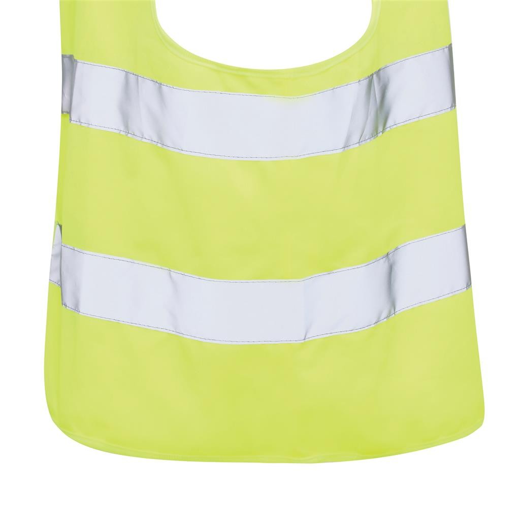 Gilet haute visibilité de signalisation conçu pour les personnes dont la taille est comprise entre 164 et 198 cm. Ce gilet offre un large espace de marquage sur le devant et le dos, ce qui le rend idéal pour un usage professionnel où la visibilité est primordiale. Il est doté d’un fond fluorescent et de bandes réfléchissantes, ce qui le rend conforme à la norme EN ISO 20471:2013+A1:2016. De plus, les vêtements sont marqués du symbole CE pour affirmer leur conformité au règlement européen 2016/425/UE, le classant dans la catégorie II des équipements de protection individuelle. Fabriqué avec du PET recyclé certifié GRS. Contenu recyclé total : 67 % sur la base du poids total de l’article. La certification GRS garantit une chaîne d’approvisionnement entièrement certifiée pour les matériaux recyclés.